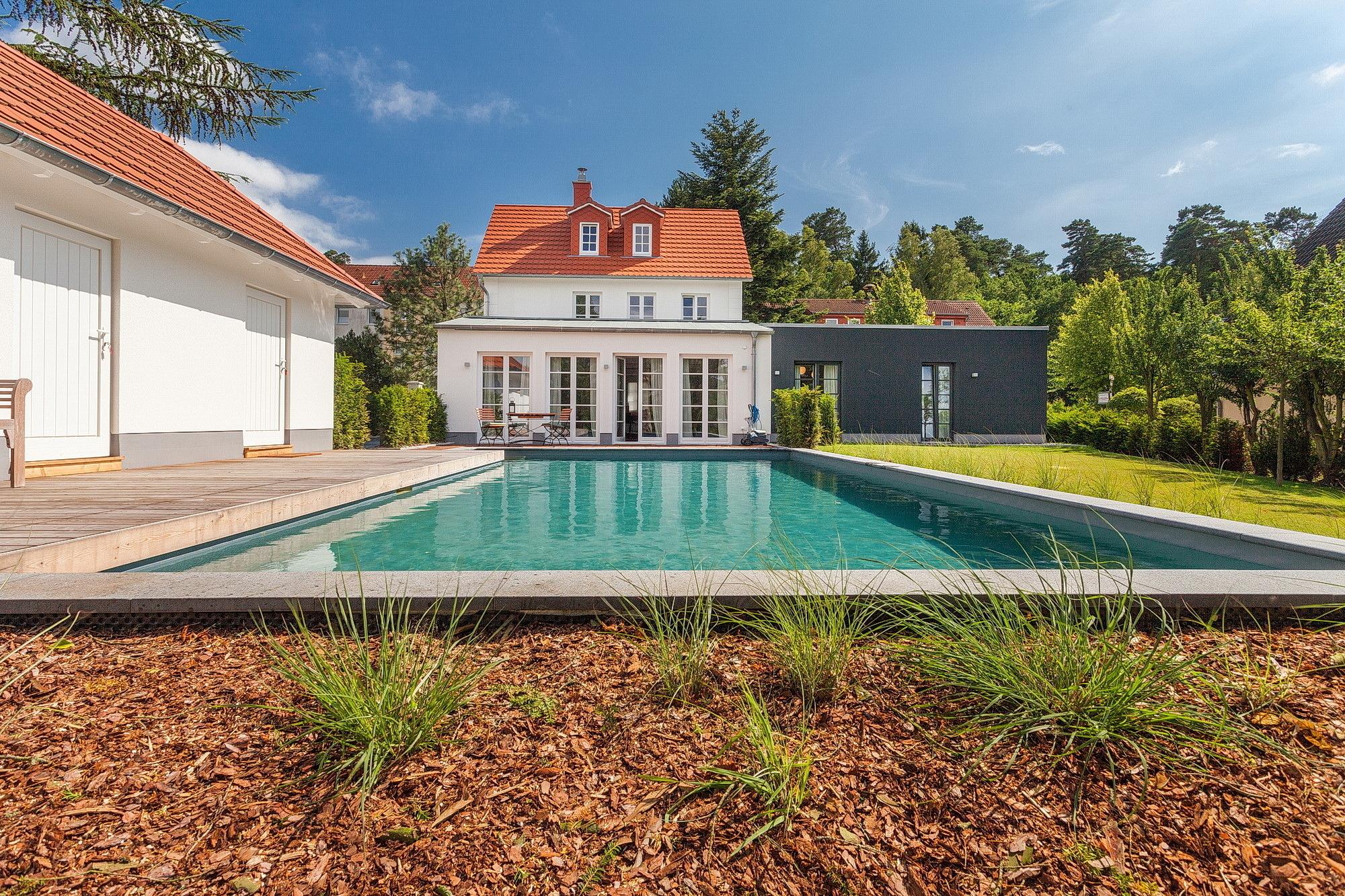 Besonderes Highlight des gepflegten, sonnigen Anwesens ist der hauseigene Außenpool (saisonal nutzbar), in dem die ganze Familie genügend Platz für Erholung und Entspannung findet. Bitte beachten Sie: Die Wassertiefe beträgt ca. 1,50 Meter; die Nutzung des Pools erfolgt auf eigene Verantwortung und Gefahr. Bequeme Garten-Ruhemöbel auf der Terrasse des stolze 1.400 qm großen Grundstücks laden zum Relaxen ein. Unser Tipp für alle Wasserratten: Zu den schönen Naturstränden am Greifswalder Bodden in Putbus/Wreechen und in Stresow sind es nur ca. 4 bzw. 8 km, die Strände der Ostseebäder Binz und Sellin erreicht man in ca. 15 Fahrminuten.