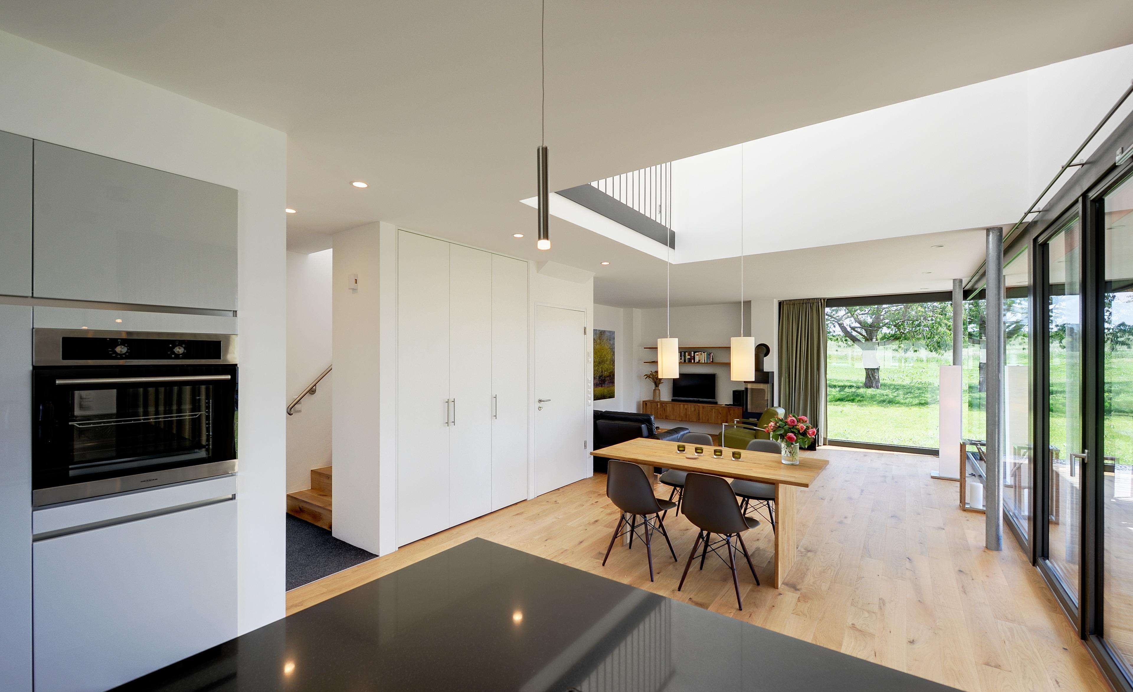Das Projekt Wreechen 25 wurde von dem Berliner Architekten Norbert Möhring entworfen. Es handelt sich um 2 versetzte Einzelhäuser. Haus 1 mit drei Schlafzimmern und Haus 2 mit zwei Schlafzimmern. Die beiden Schlafzimmer im Dachgeschoss haben jeweils ein eigenes integriertes Duschbad. Die Küche ist sehr gut ausgestattet und läßt keine Wünsche offen. Über dem Esstisch befindet sich eine Empore mit Blick bis zu den großen Dachfenstern. Tagsüber sorgen diese Fenster für lichtdurchflutete Räüme, bei Dunkelheit sieht man bei entsprechender Wetterlage den Mond und die Sterne.