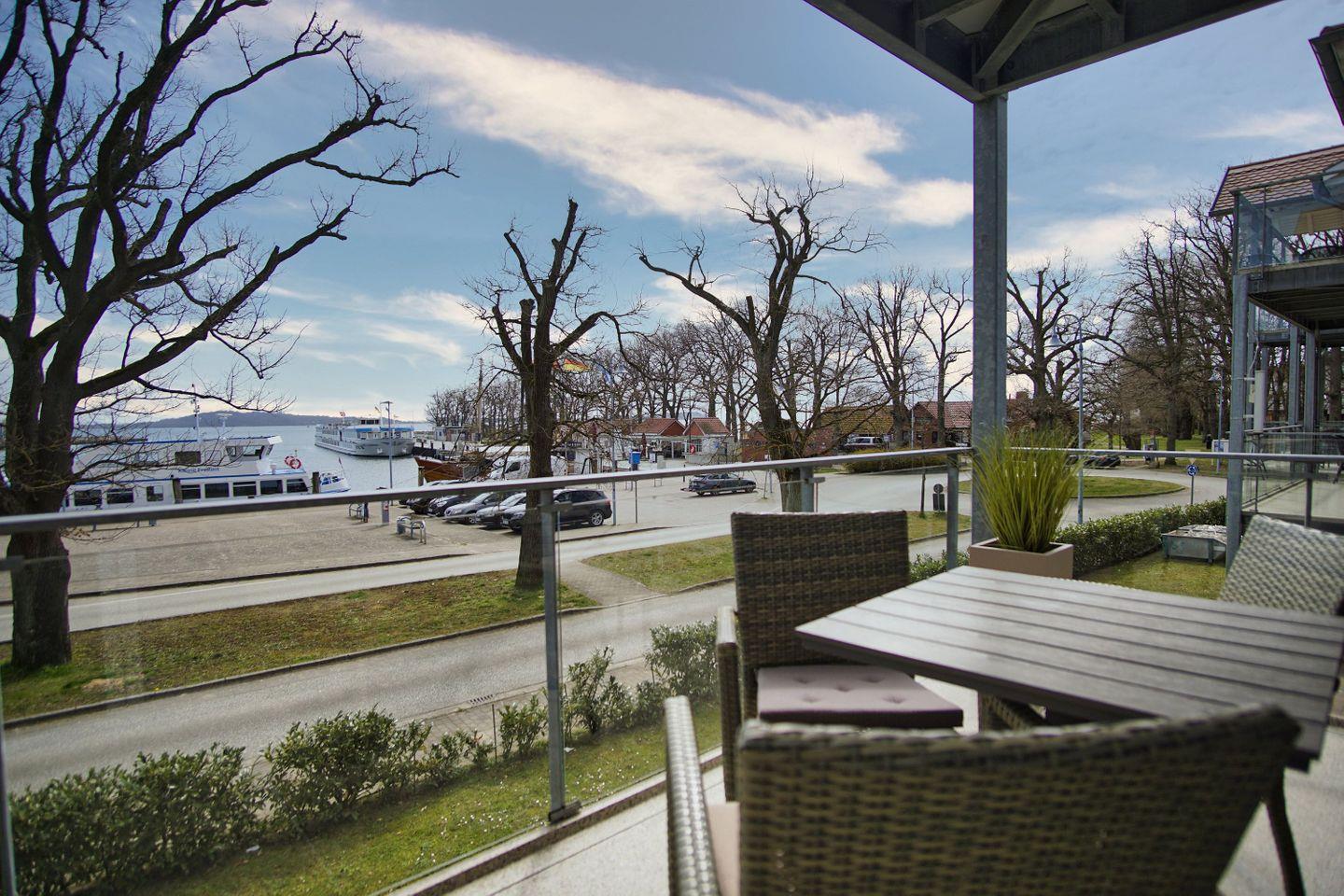 Jede Ferienwohnung verfügt über einen ausladenden, eigenen Balkon (Typ A und B) oder eine eigene Terrasse (Typ C). Von den Balkonen haben Sie einen direkten Blick auf den Hafen und auf die Insel Vilm. Hier können Sie stundenlang dem Treiben im Hafen zusehen und den wunderschönen Blick über den Bodden genießen.