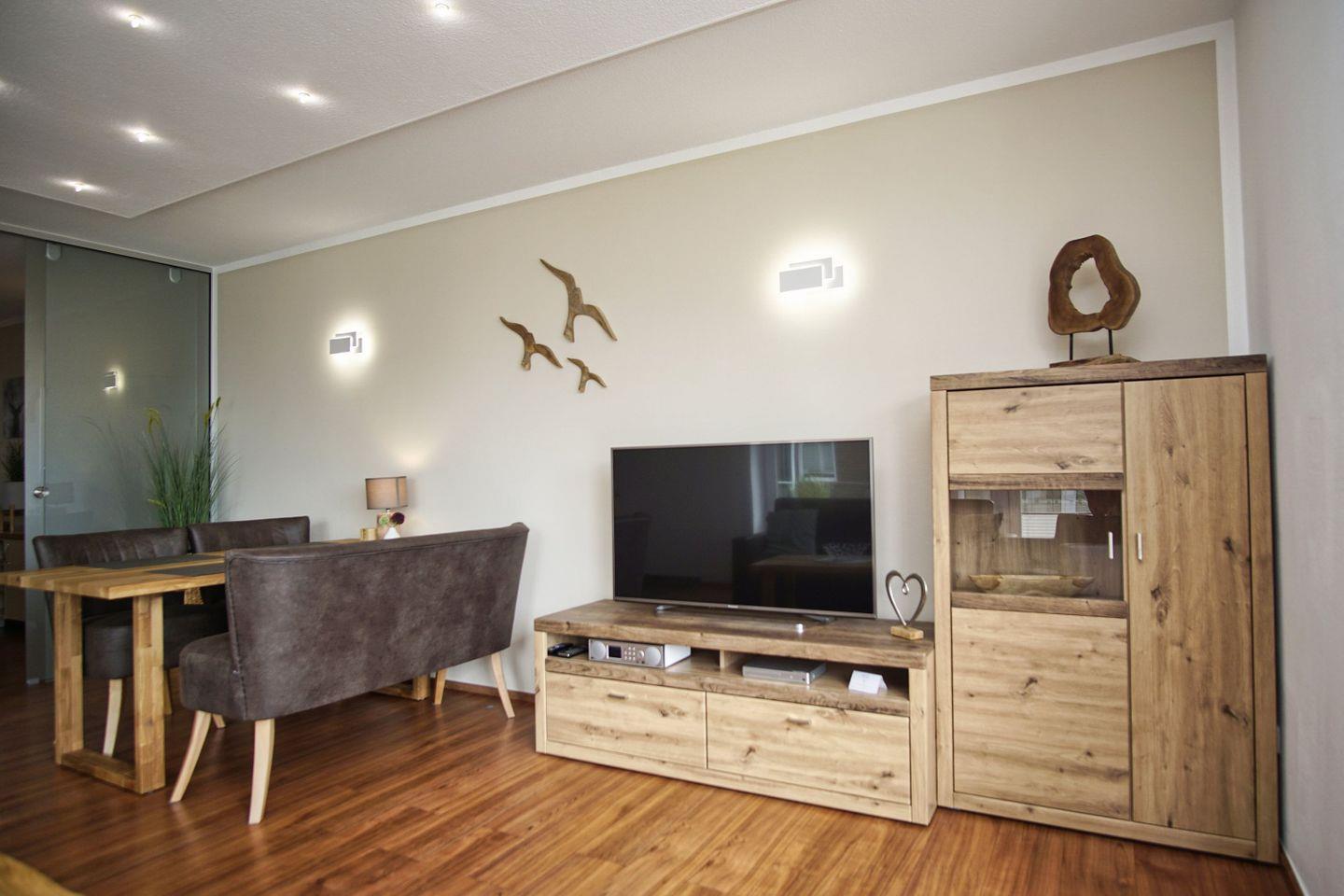 WOHNEN // Wohnraum mit Essbereich, Sitzgarnitur mit bequemer Schlafcouch, Flachbild-TV (Kabel) ++