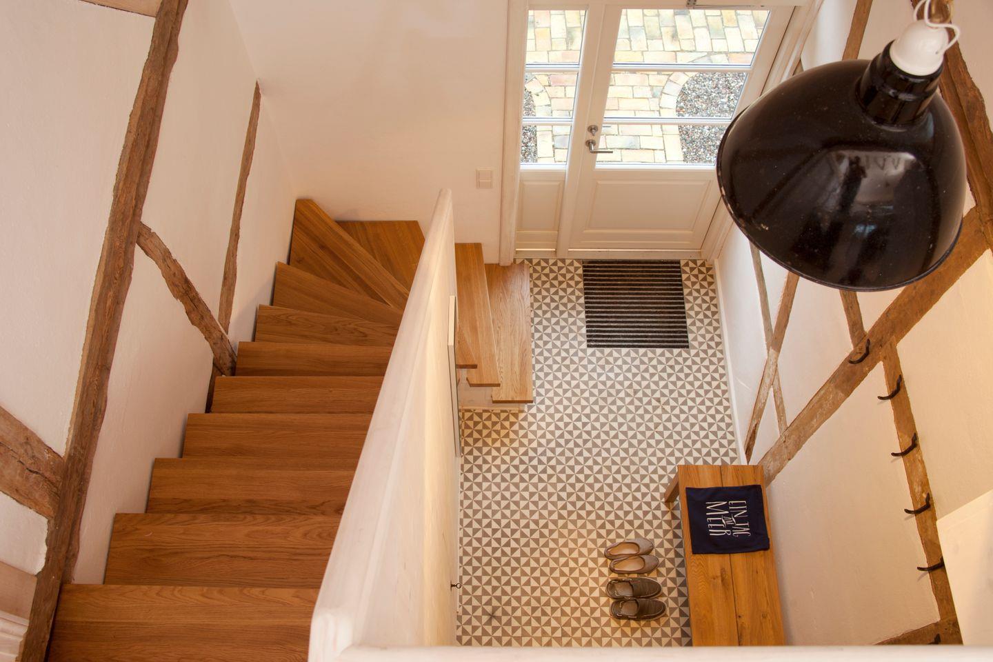 Die Wohnung verfügt über 3 Schlafzimmer, das Eine mit einem bequemen Doppelbett auf einem Schlafpodest, die Anderen mit ebenfalls auf einem Podest befindlichen Einzelmatratzen, die nach belieben zusammen geschoben werden können. sowie ein Tageslichtbad mit Dusche und WC. Auch ein kleines Gäste WC befindet sich in der Wohnung.