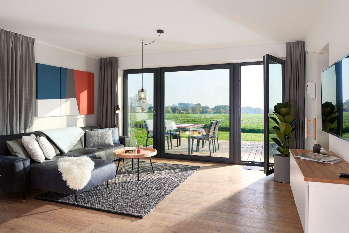 Erleben Sie Komfort und Natur im eleganten Backsteinquartier C in Putbus mit Seeblick und Sauna.