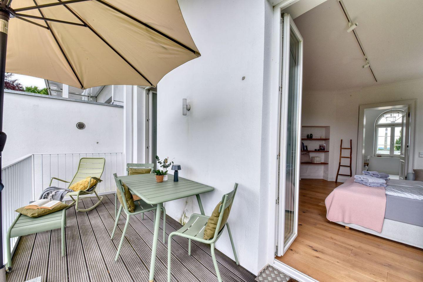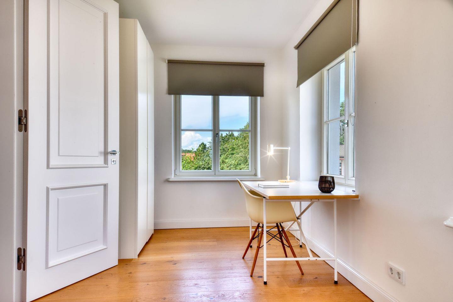 Die geschmackvolle Einrichtung und die hochwertige Ausstattung sorgen dafür, dass Sie sich vom ersten Moment an wie zu Hause fühlen. Die geräumige Wohnküche lädt zu gemeinsamen Kochabenden ein und ist mit modernen Geräten ausgestattet. Der Wohnbereich ist gemütlich eingerichtet und bietet einen herrlichen Blick auf den Circus von Putbus.
