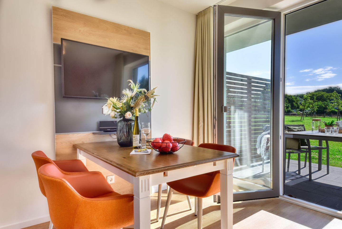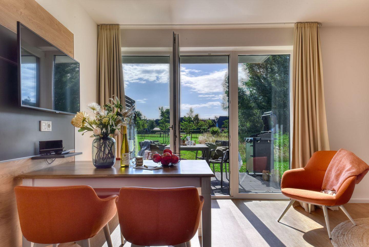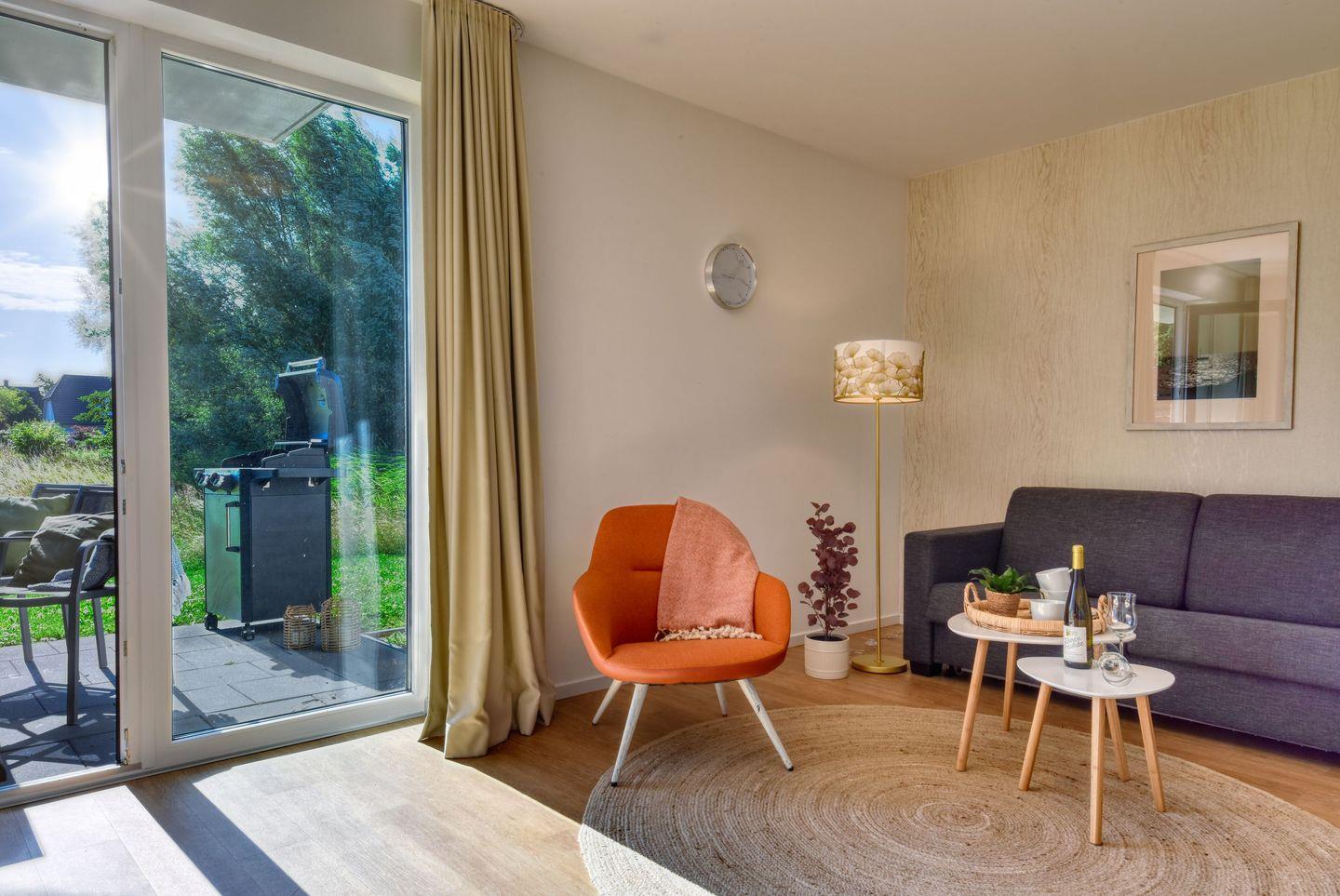 Wohnzimmer: Im gemütlichen Wohnzimmer erwartet Sie ein bequemes Schlafsofa, das Platz für zwei weitere Gäste bietet. Hier können Sie nach einem erlebnisreichen Tag entspannen, TV schauen oder einfach den Blick in die Natur genießen.