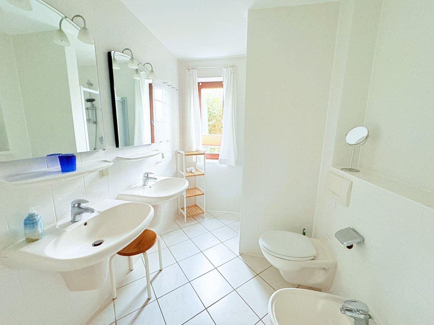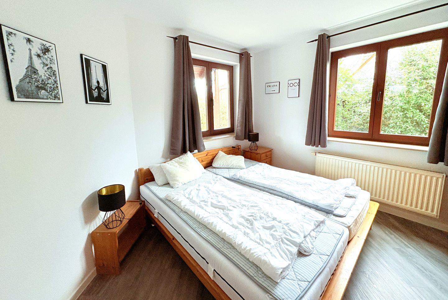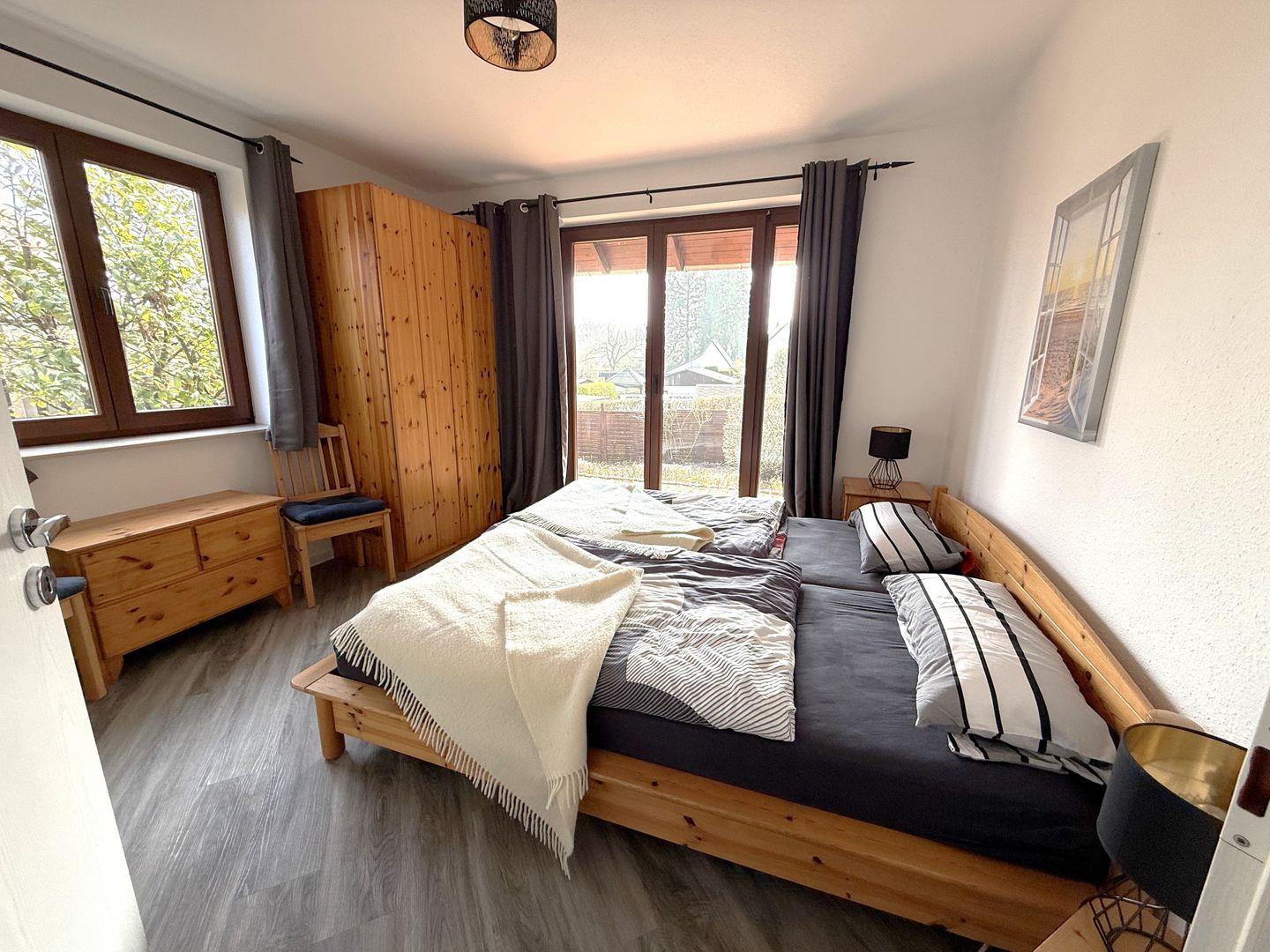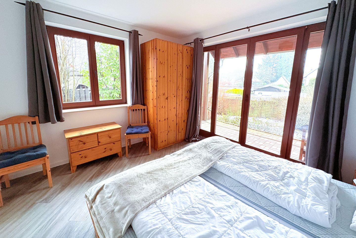 Großzügige 90 m² Erdgeschosswohnung für bis zu 6 Personen mit zwei Schlafzimmern, zwei Bädern, offenem Wohn-/Küchenbereich, Terrasse und Garten. Moderne Ausstattung, WLAN, TV und Grillmöglichkeit. Ideal für Familien und kleine Gruppen.