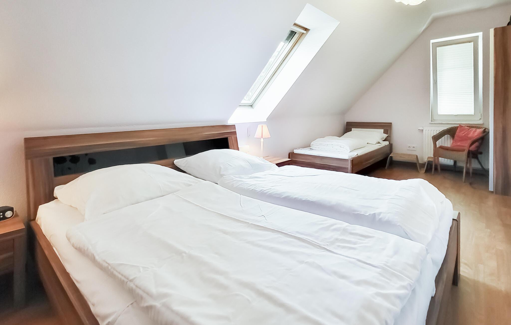 Schlafzimmer 14m2 (nr. 1) - 1 Schlafmöglichkeit. (Einzelbett(en)). 2 Schlafmöglichkeiten. (Doppelbett(en)).