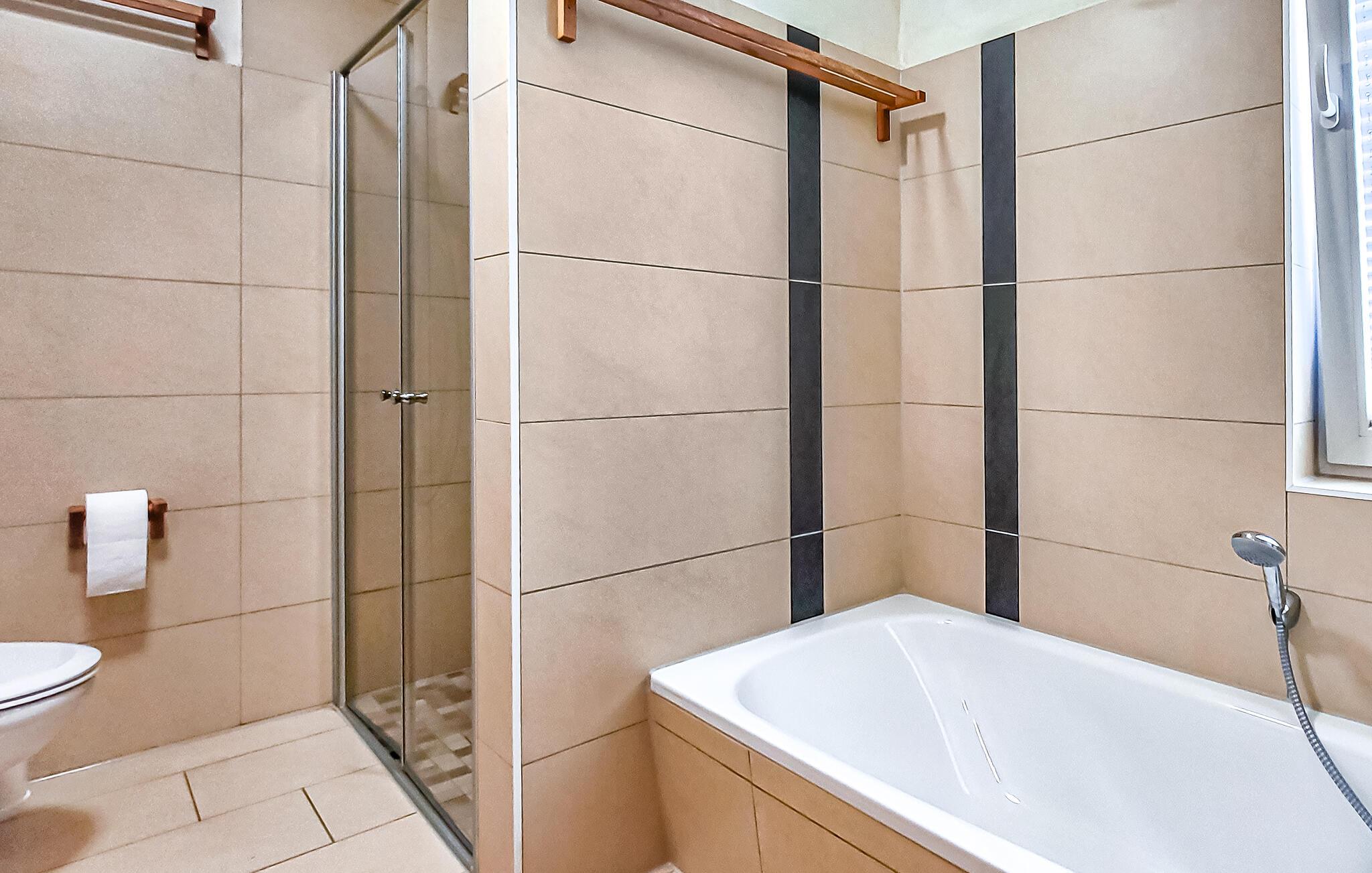 Badezimmer 10m2 (nr. 1) - WC. Warmes und kaltes Wasser. Dusche und Badewanne