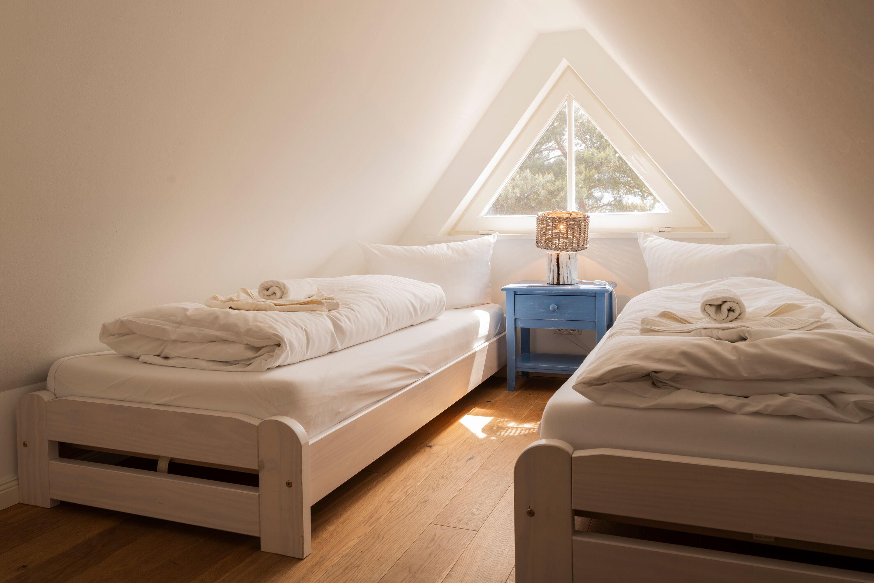 Schlafgalerie für Kinder mit zwei Einzelbetten - ideal als Rückzugsort für Kinder ab dem Vorschulalter (ca. 5 Jahre), bis 14 Jahre. Bitte beachten Sie: Die Treppe zur Galerie ist etwas steiler und daher nicht für kleinere Kinder geeignet.