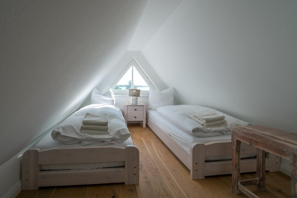 Schlafgalerie für Kinder mit zwei Einzelbetten - ideal als Rückzugsort für Kinder ab dem Vorschulalter (ca. 5 Jahre), bis 14 Jahre. Bitte beachten Sie: Die Treppe zur Galerie ist etwas steiler und daher nicht für kleinere Kinder geeignet.