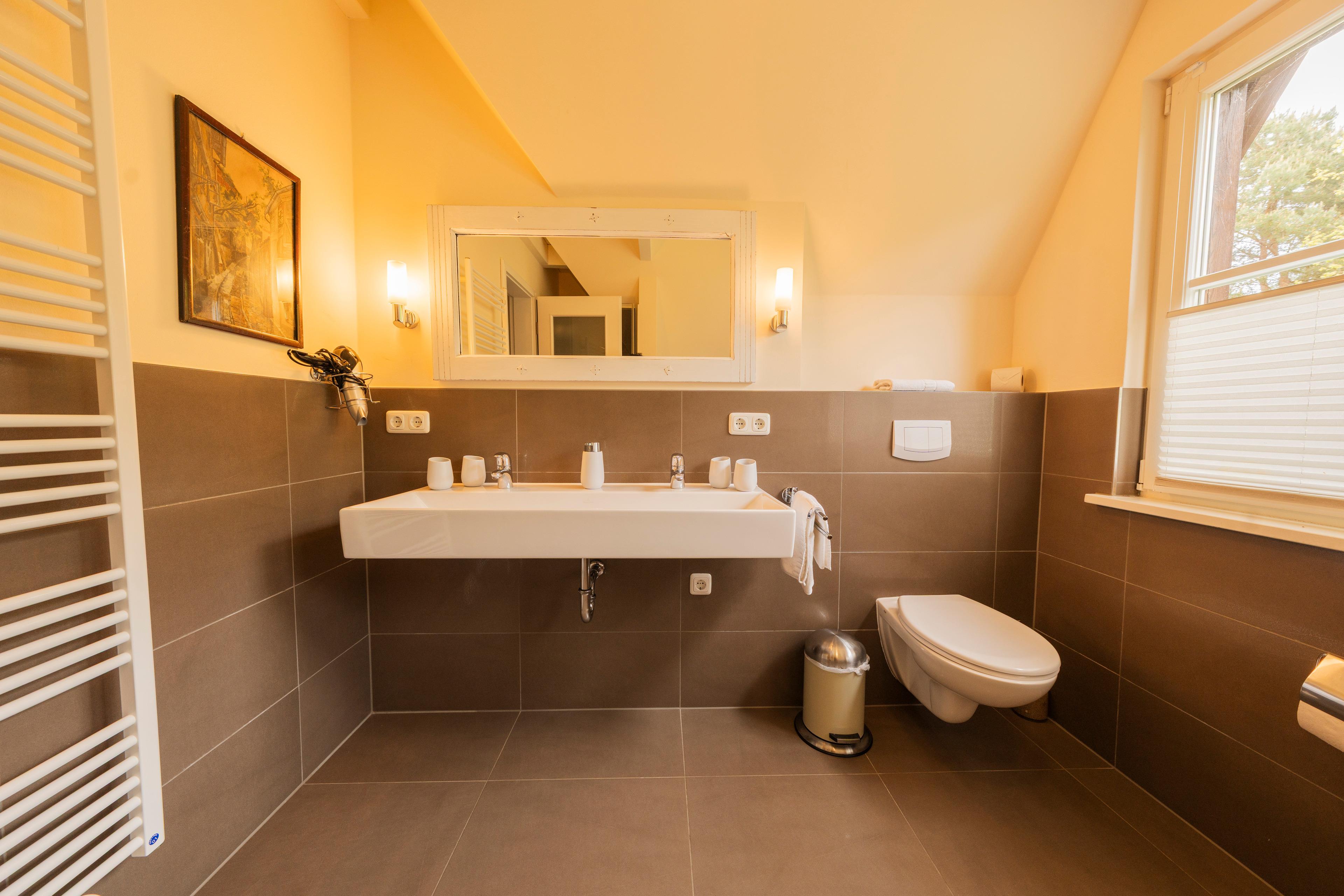 Helles Wohlfühlbad mit Eckbadewanne, Dusche, WC und Doppelwaschtisch – stilvoll gestaltet und bestens ausgestattet.