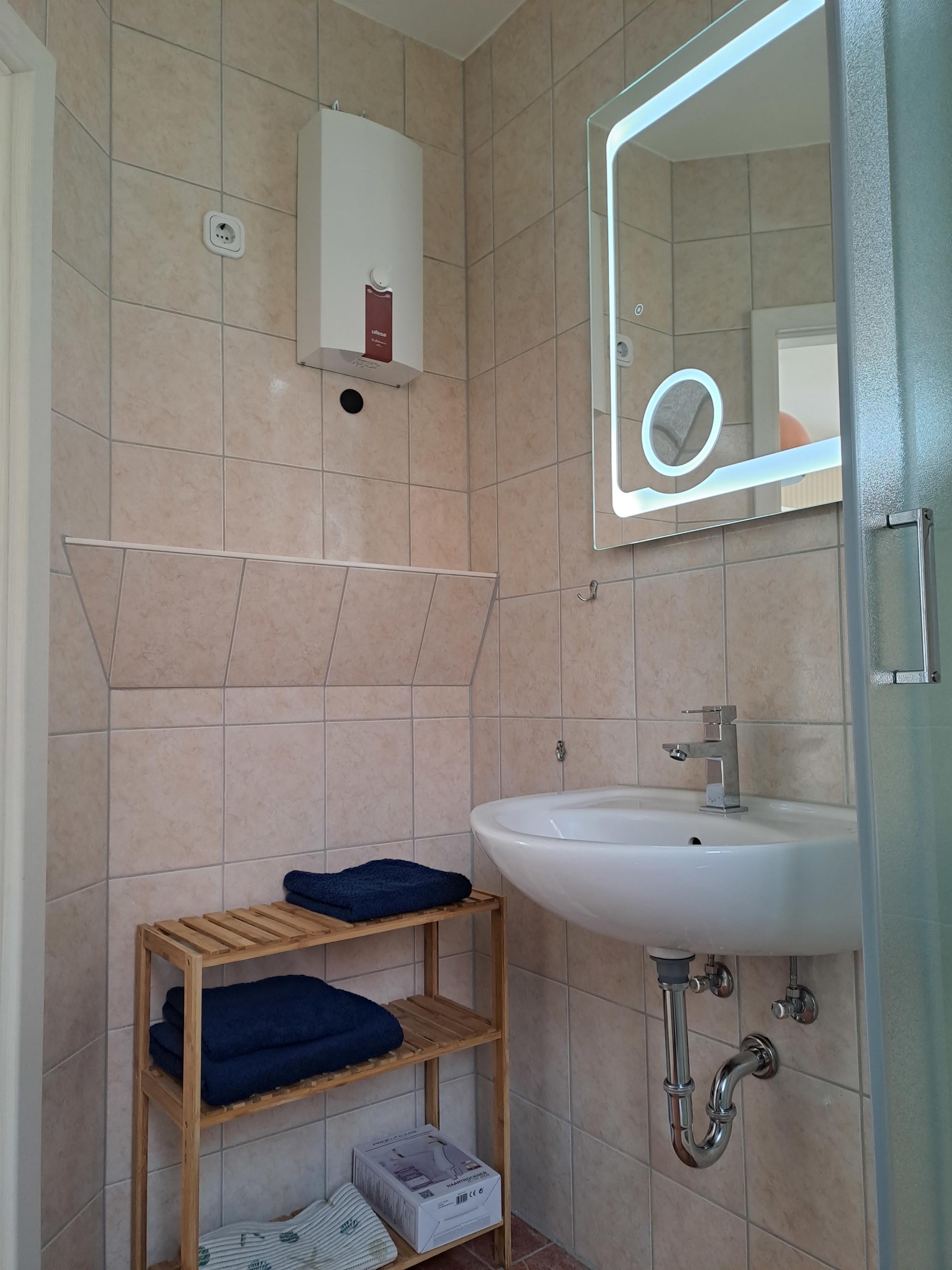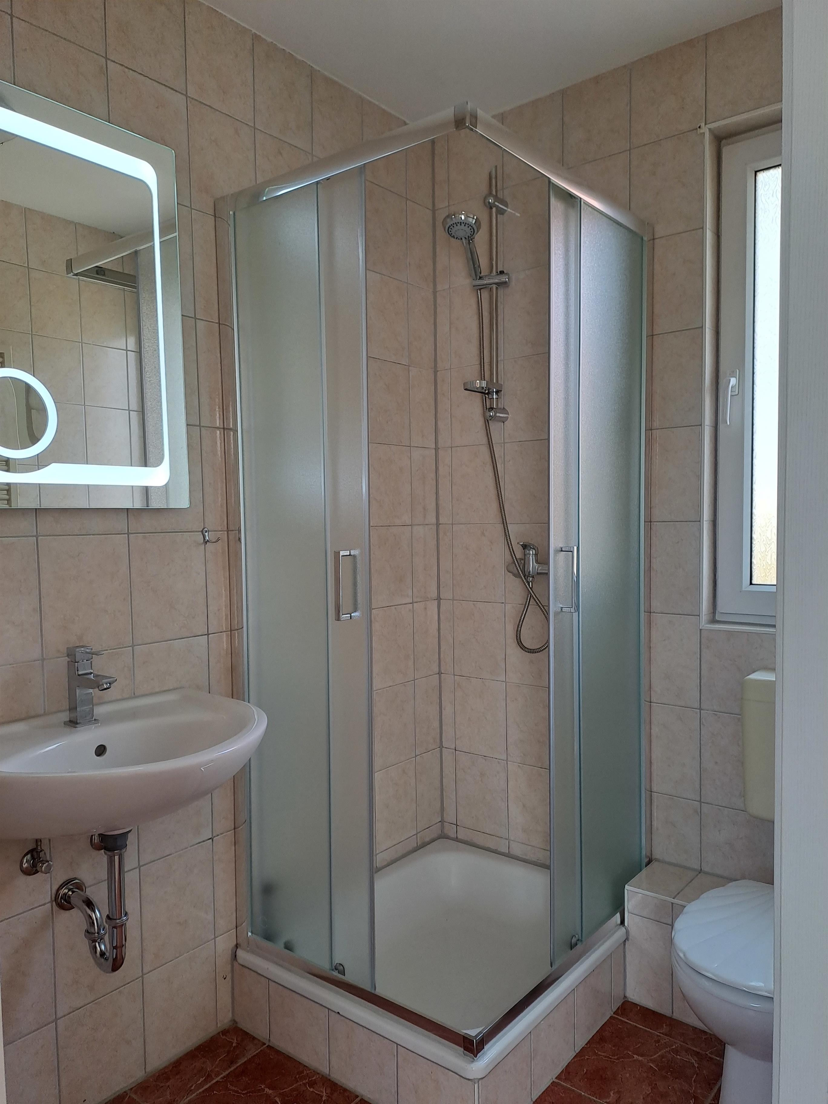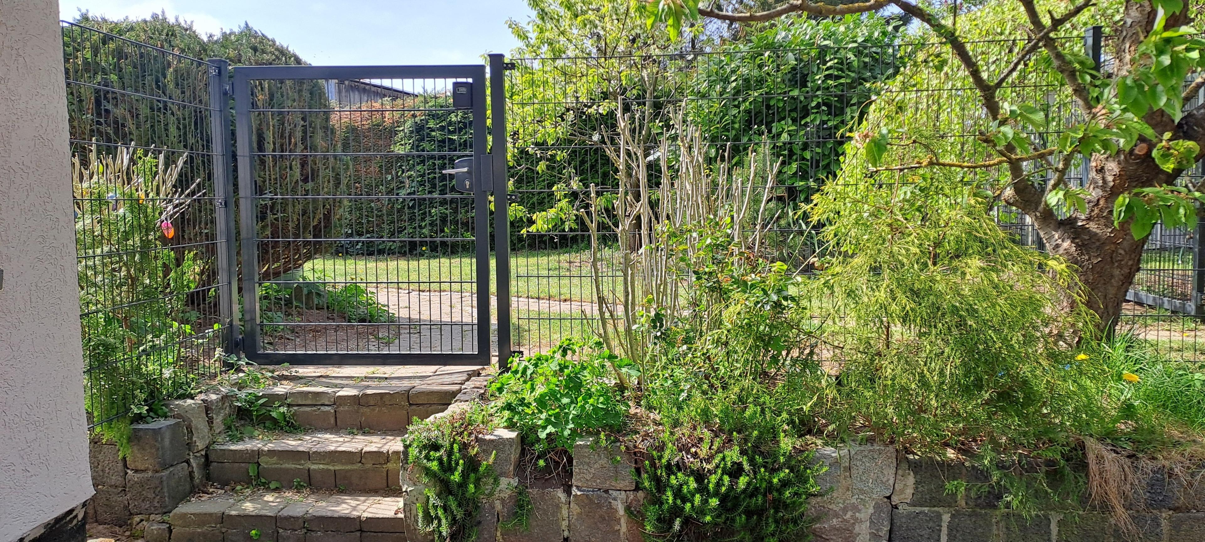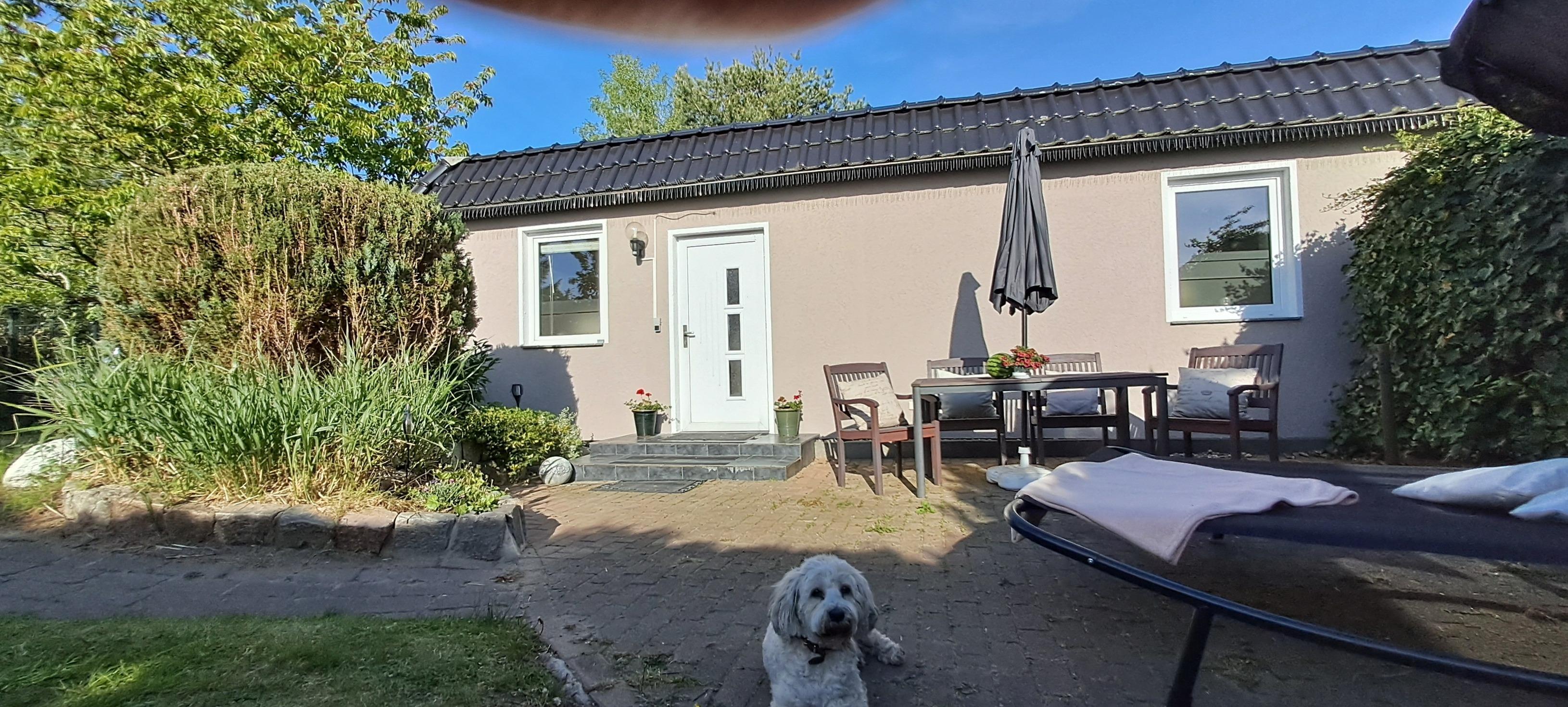 Die FEWO ist ideal für drei Erwachsene oder zwei Erwachsene mit einem Kind ausgelegt. Für die Größe der FEWO bieten sich idealerweise maximal zwei mittelgroße Hunde an. Direkt vor der FEWO befindet sich die Terrasse mit Tisch und Stühlen sowie einem Sonnenschirm. Manchmal besucht uns auf dem Grundstück unsere Draußenkatze Cleo oder auch die Nachbarskatze.