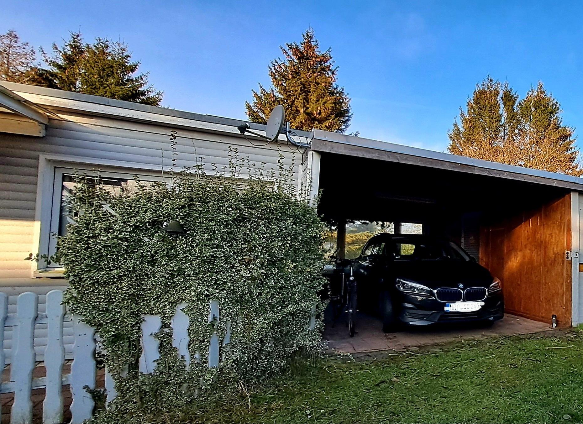 Das Ferienhaus von 30qm ist für zwei Personen ausgelegt. Für die Größe von 30qm bieten sich idealerweise maximal zwei mittelgroße Hunde an. Direkt vor dem Ferienhaus befindet sich die kleine umzäunte Terrasse mit Tisch und Stühlen. Manchmal besucht uns auf dem Grundstück unsere Draußenkatze Cleo oder auch die Nachbarskatze. Der Sommerbungalow kann von Monat März bis Anfang November gebucht werden.