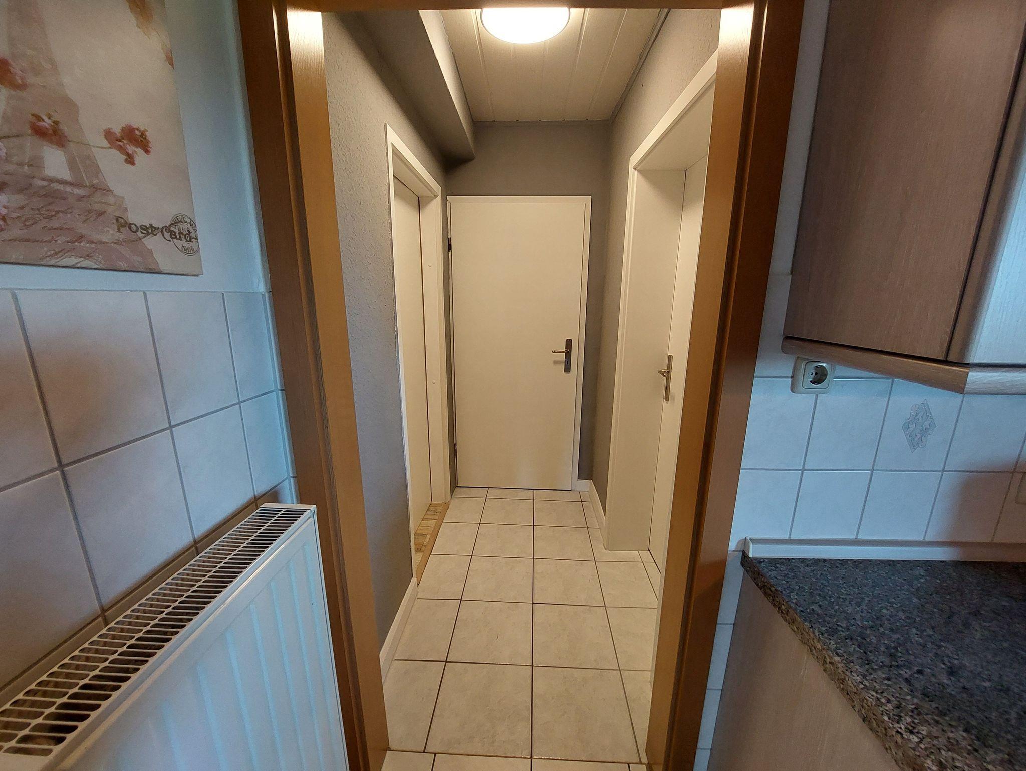 Durch einen kleinen Flur gelangen Sie rechts ins Badezimmer und zur linken ins Schlafzimmer.