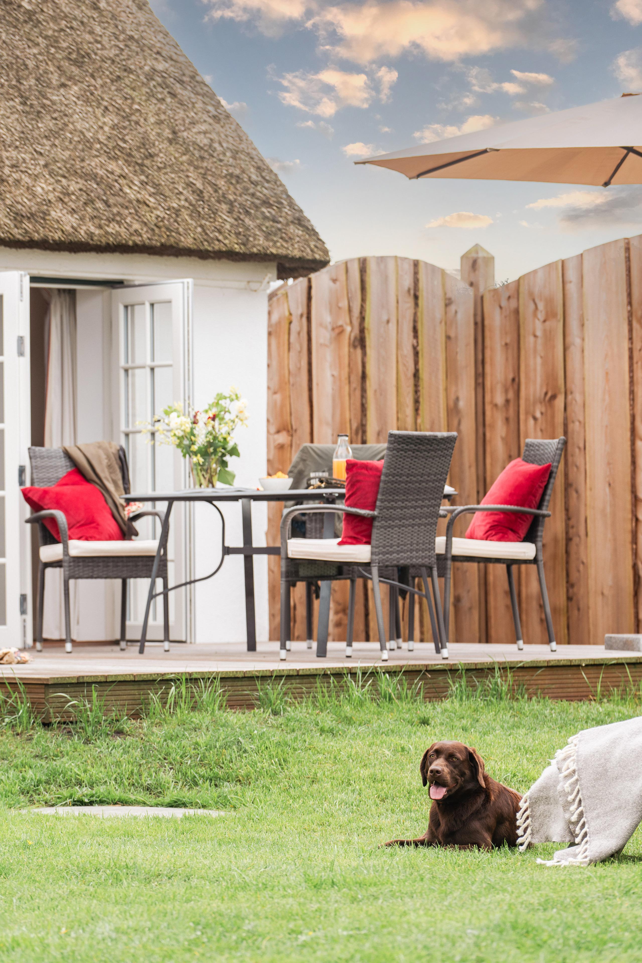 Idyllische Reetdachkate in Rabenholz mit großem Garten, Kamin und Sauna – perfekter Ort für Erholung und Komfort.