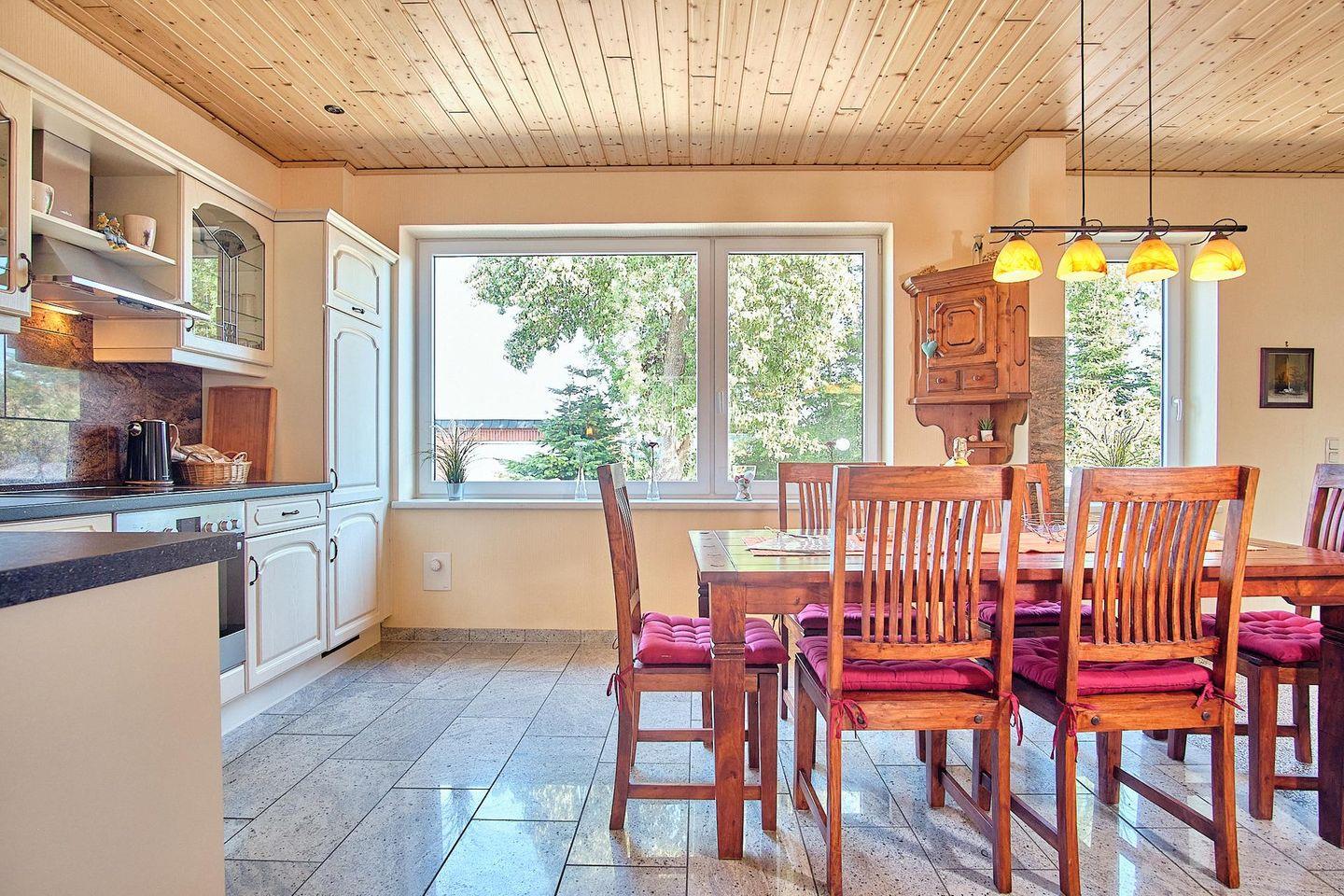 Das gemütlich eingerichtete Domizil verfügt über 1 Wohnzimmer, 1 offene Küche mit Essbereich, 3 Schlafräume, 2 Duschbäder sowie einen ca. 1.200 m² großen Garten, von dem aus Sie einen herrlichen Blick über die angrenzenden Felder haben.