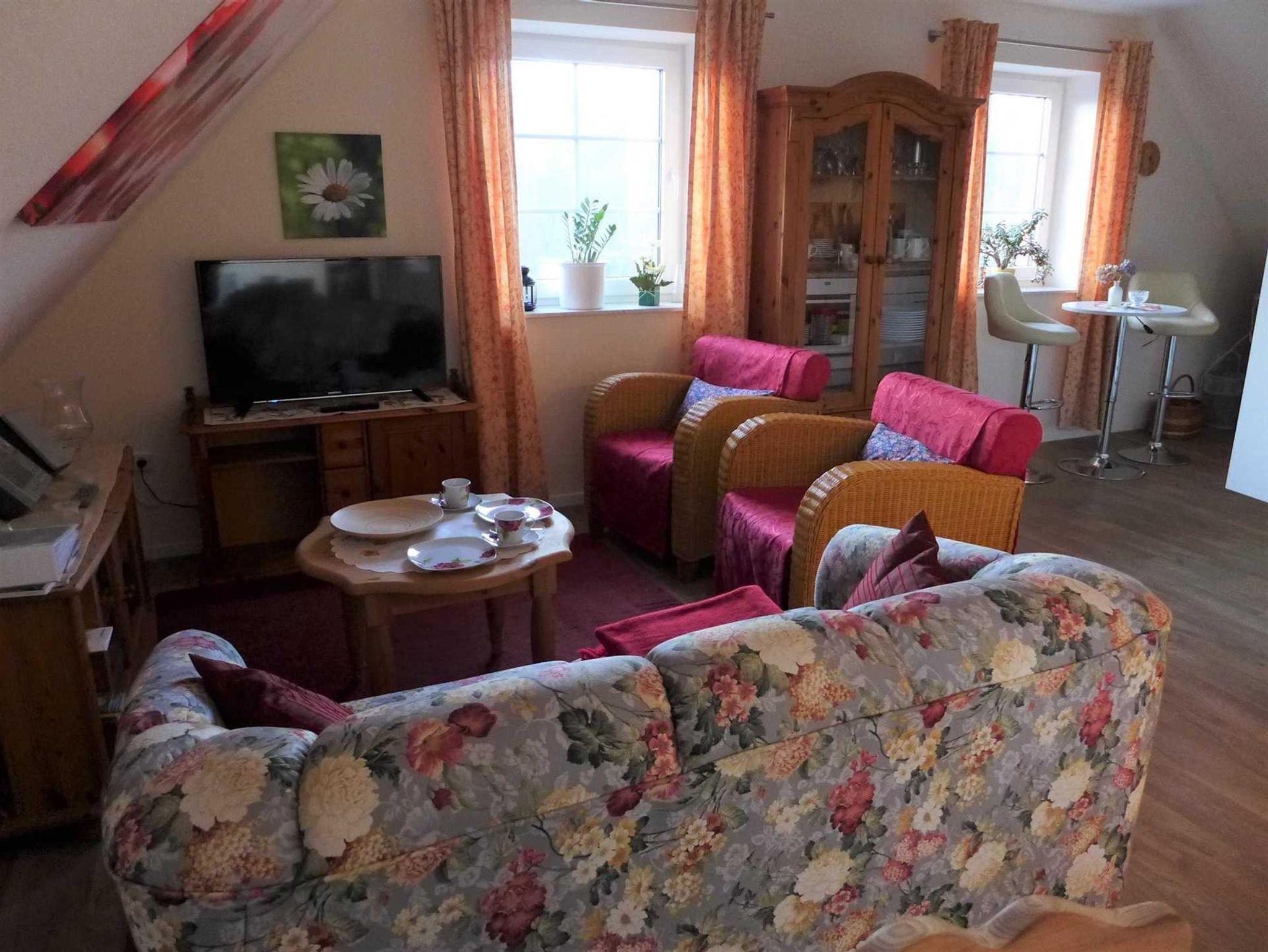 Gemütliche, liebevoll im Landhausstil eingerichtete Ferienwohnung Schleiwiese mit 61 m² im Obergeschoss für 4 Personen.