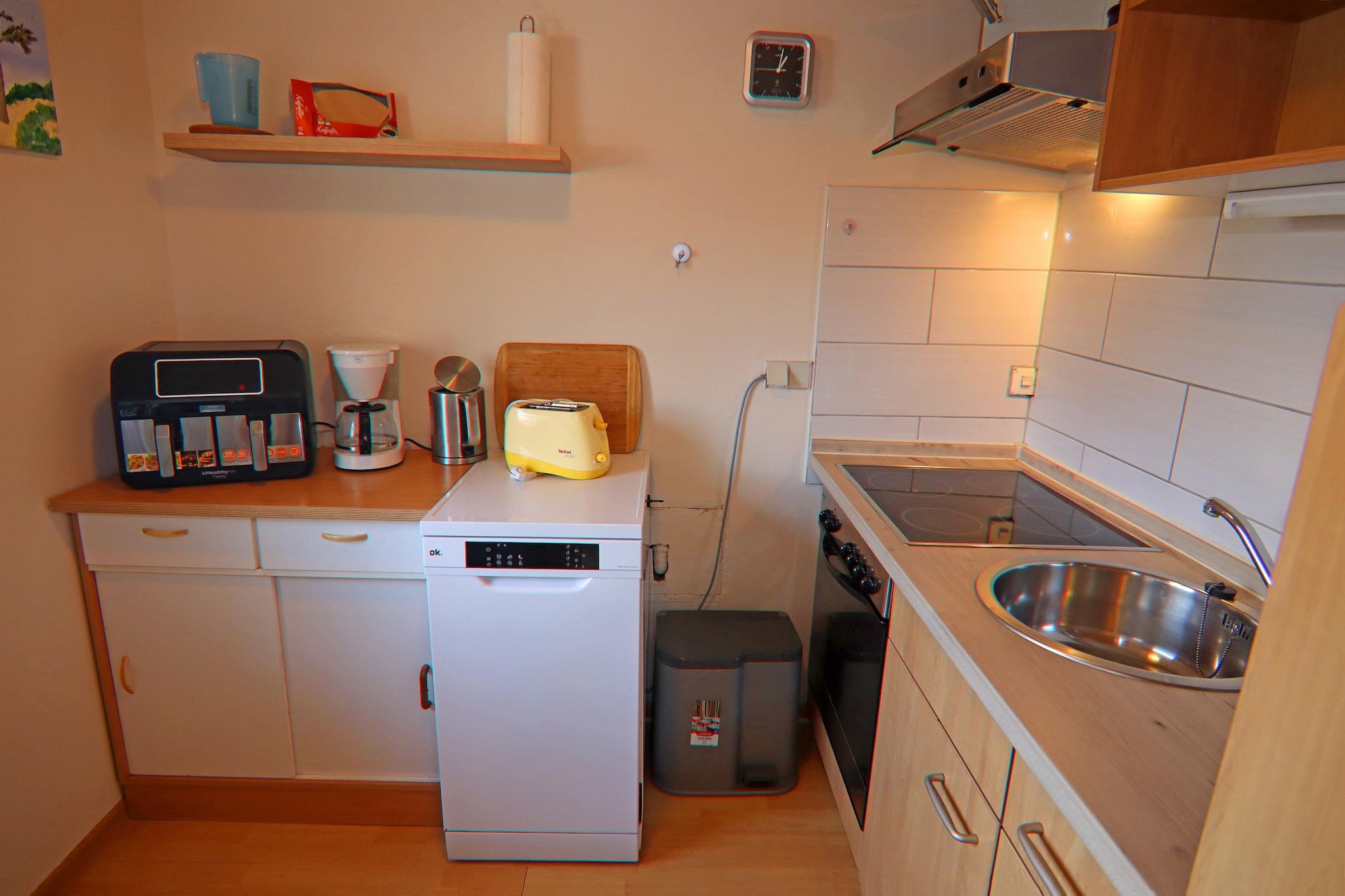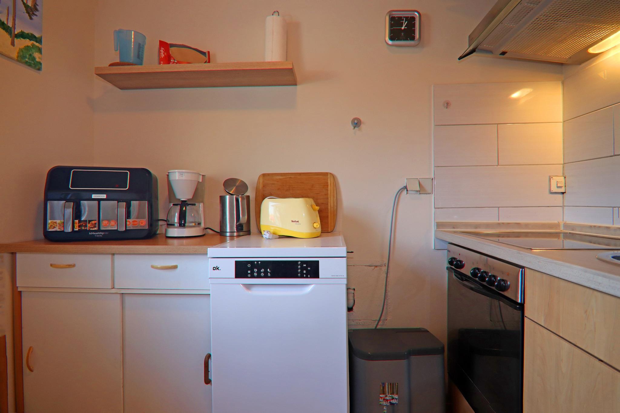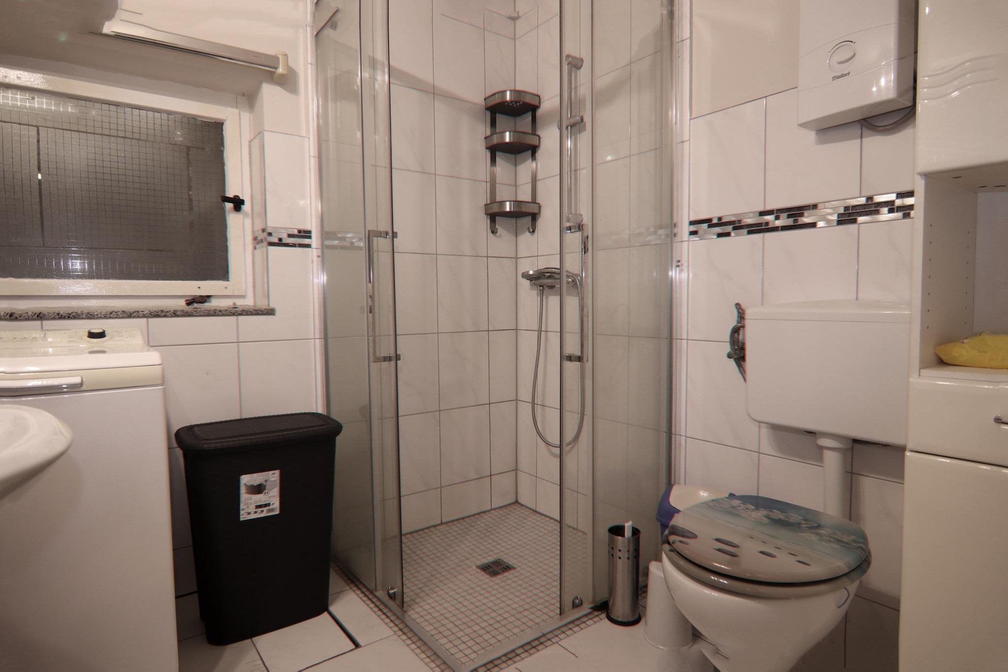 Parterre: (Küche(Kochplatte(4 Kochplatten, Ceranfeld), Wasserkocher, Toaster, Kaffeemaschine, Backofen, Mikrowelle, Spülmaschine, Kühlschrank), Wohn-/Schlafzimmer(Doppelbett king size(180 x 200 cm), TV(Satellit), Esstisch(2 Personen), Sitzecke, Radio), Badezimmer(Dusche(ebenerdige Dusche), Waschbecken, Toilette, Waschmaschine(gegen Gebühr))) Terrasse(überdacht), Garten(Gemeinschaftliche Nutzung mit dem Eigentümer), Gartenmöbel, Grill(Holzkohle), Parkplatz, Wäschepaket gegen Gebühr,