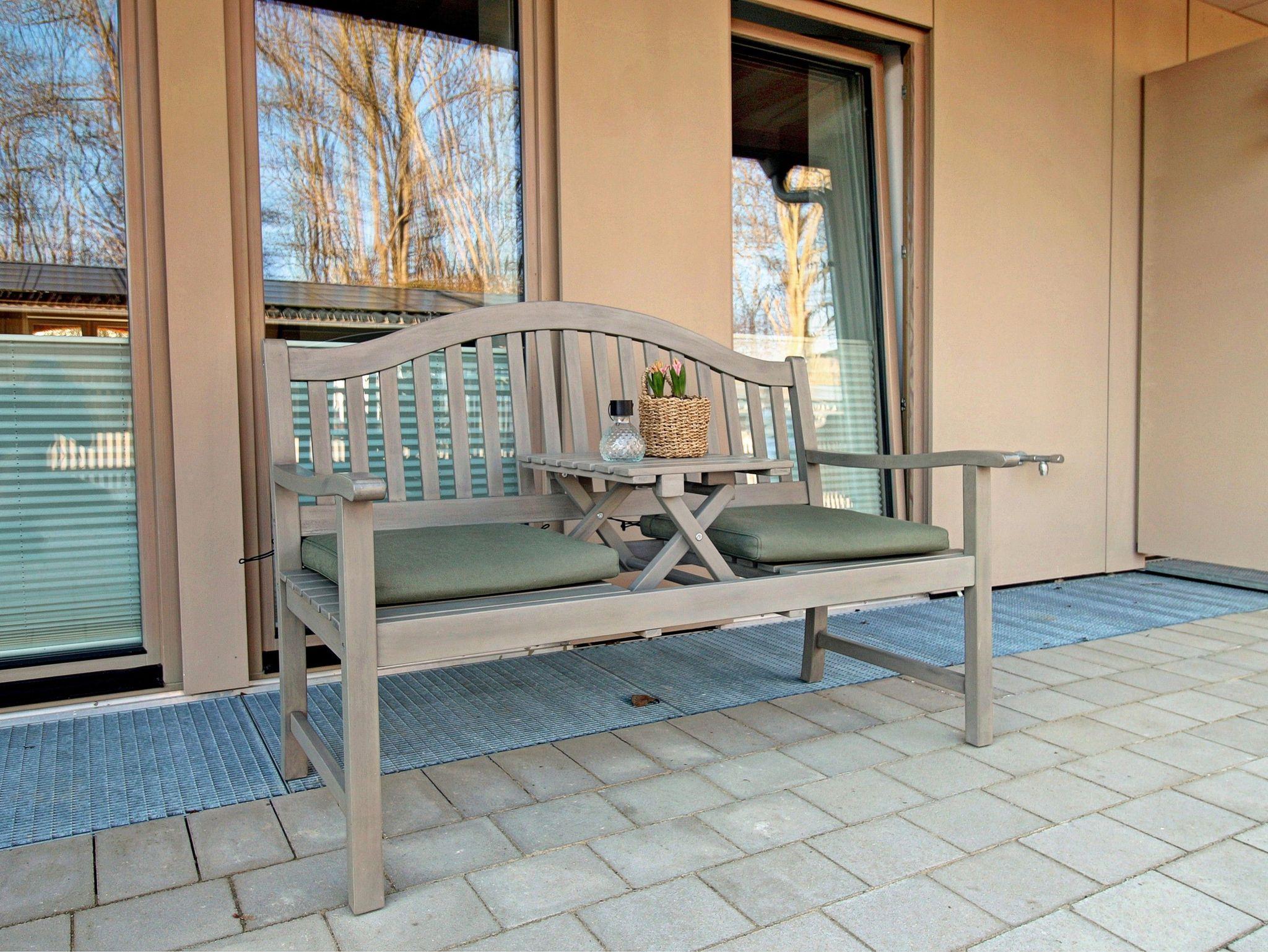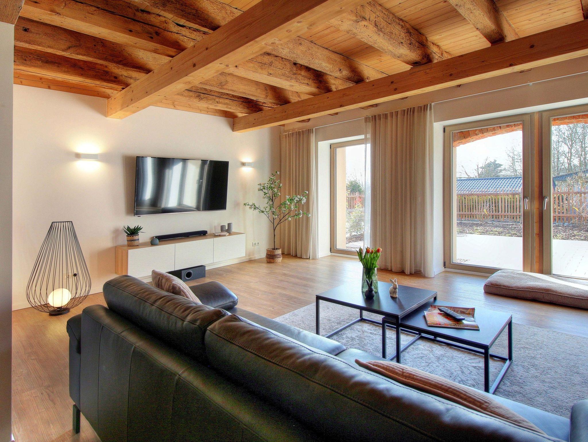 Im großen offenen Wohnbereich lädt eine gemütliche Sitzecke zu Relaxen und zu gemütlichen Spiel- oder Fernsehabenden ein, ein Smart-TV ist hier vorhanden. Von hier aus gelangen Sie auch auf die eigene Terrasse mit Sitz- und Liegemöbeln, auf der Sie den Abend zum Sonnenuntergang ausklingen lassen können.