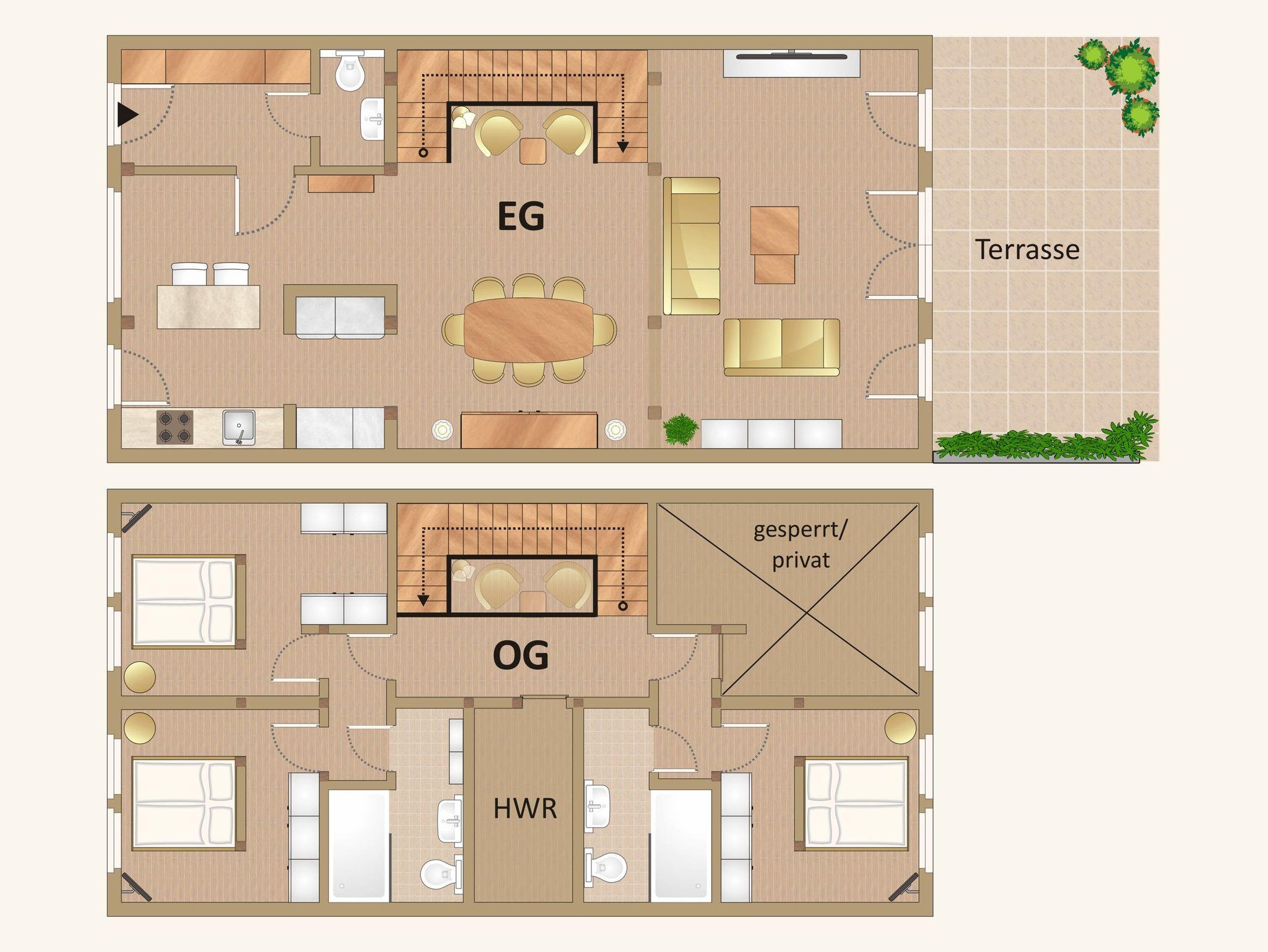 Hinweis: Aufgrund der offenen Treppe zum Obergeschoss des Hauses, bitten wir bei Familien mit kleinen Kindern um besondere Vorsicht.