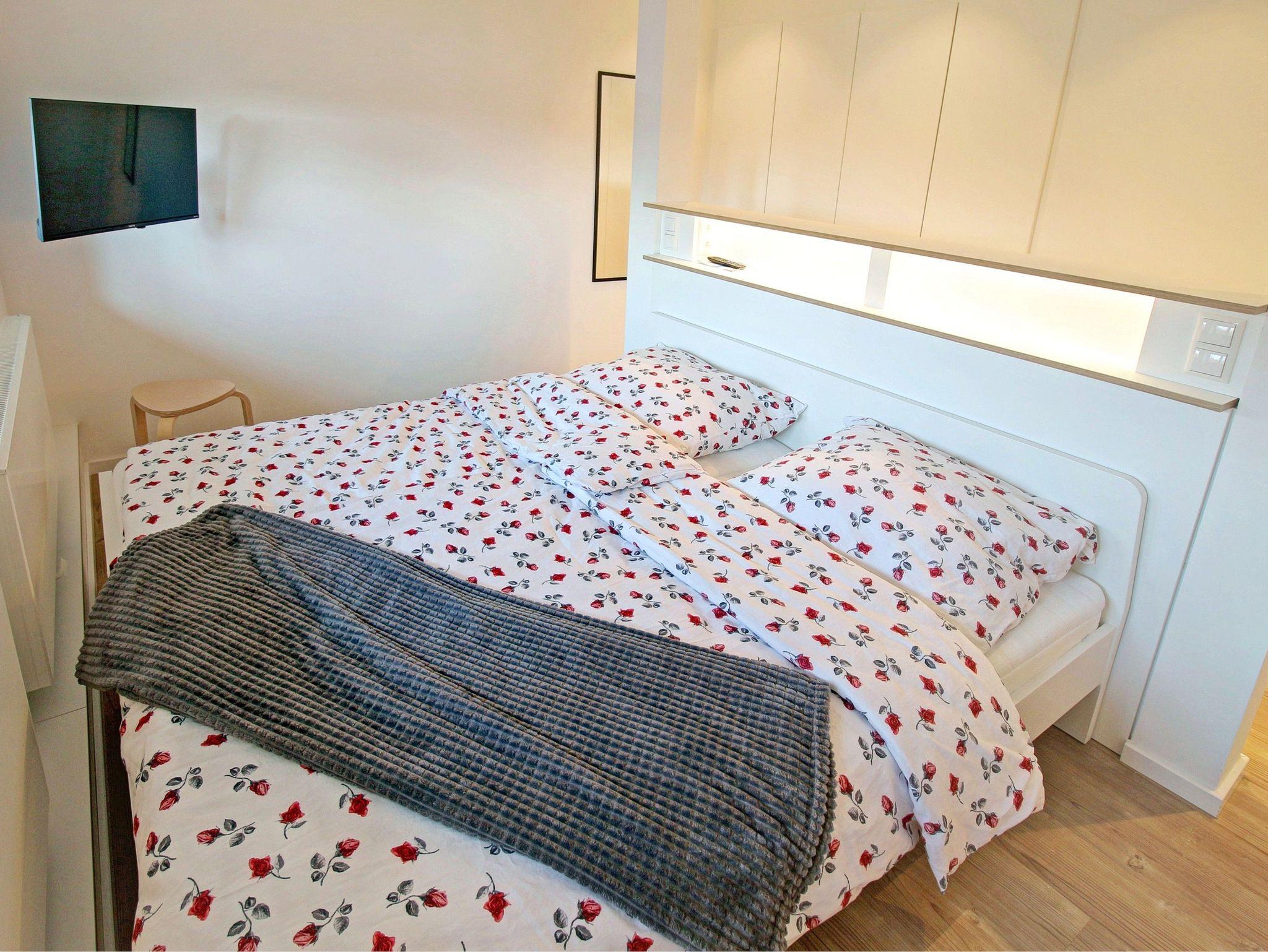Die Schlafzimmer verfügen jeweils über ein Doppelbett (1,80x2,00m, getrennte Matratzen). Kleiderschränke und auch jeweils ein TV sind ebenfalls vorhanden. Die 2 Bäder verfügen neben einem WC auch jeweils über eine große, ebenerdige Dusche.