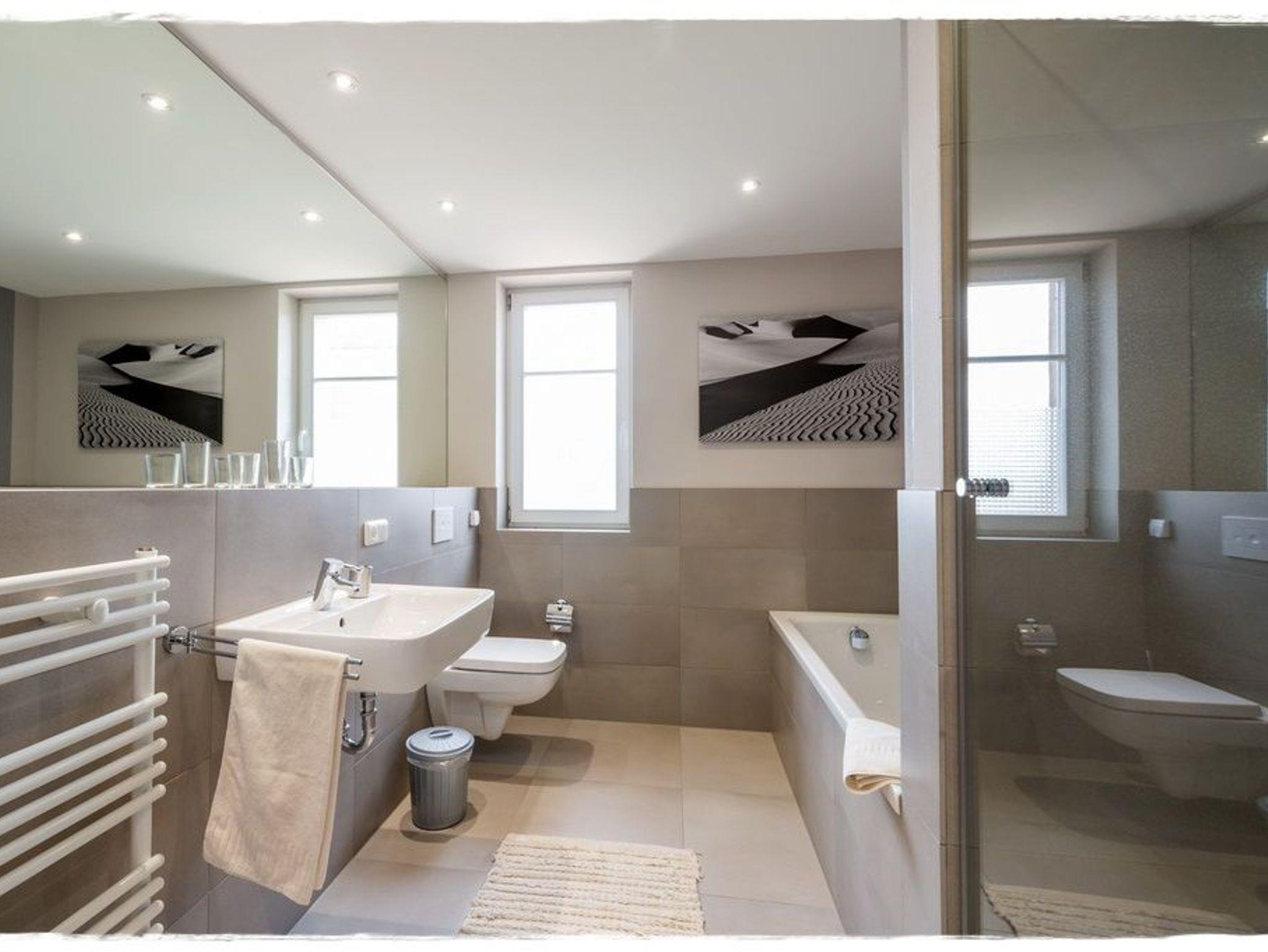 • Badezimmer: Hochwertig ausgestattet mit Badewanne und Dusche