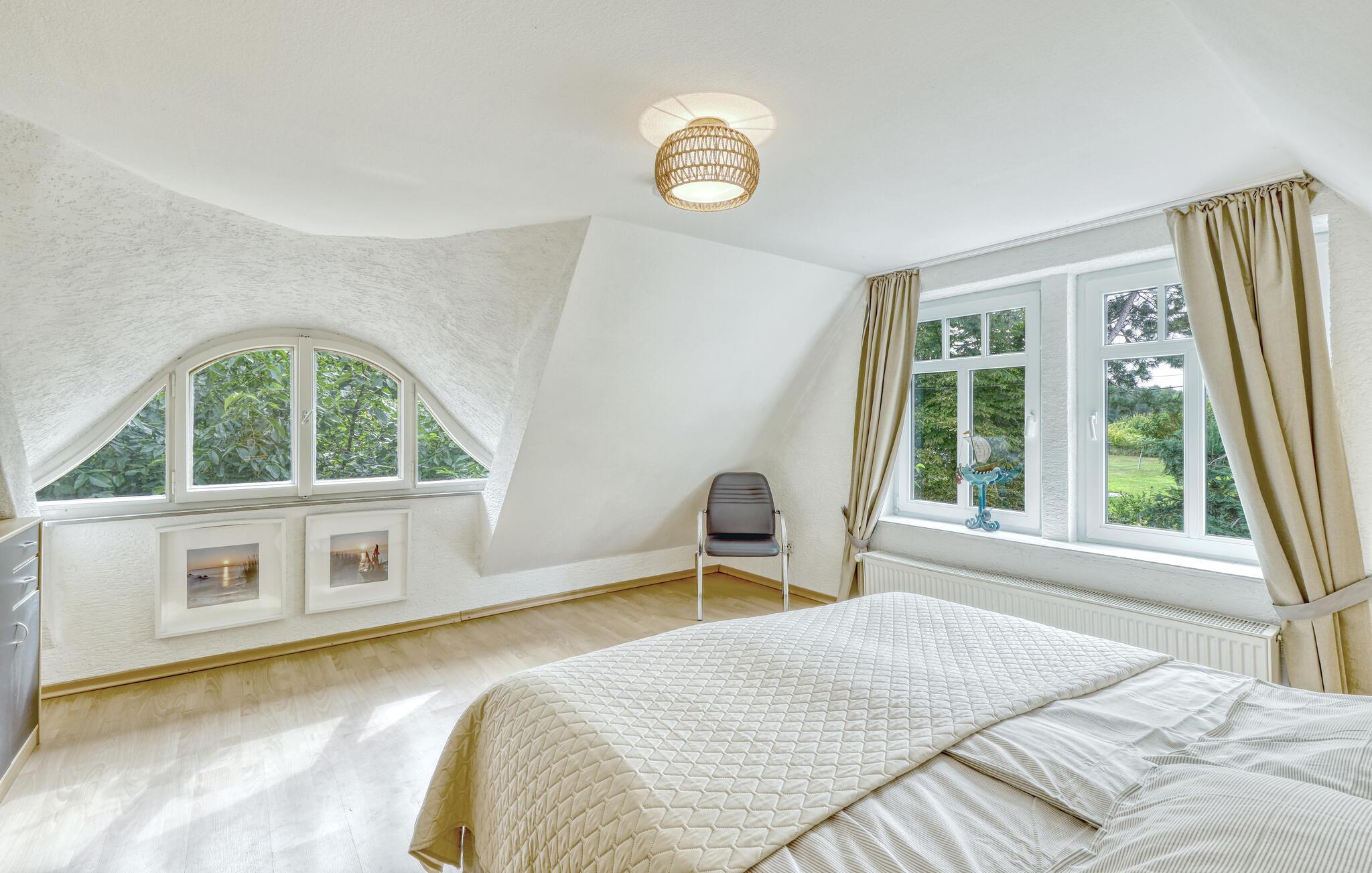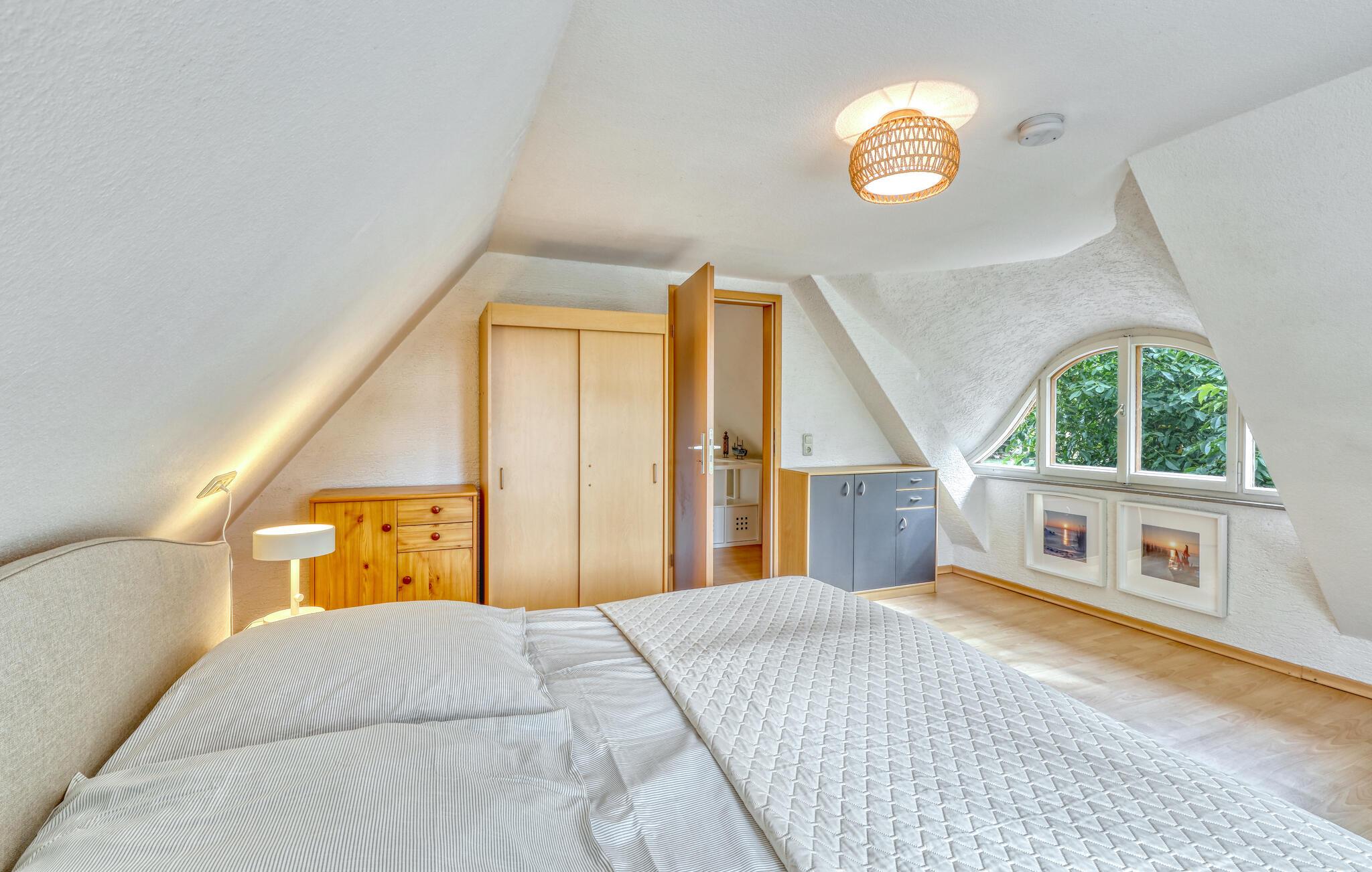 Treten Sie hinaus in den gepflegten Außenbereich und entdecken Sie den grünen Garten mit alten Bäumen. Nutzen Sie die Sonnenliegen für ruhige Stunden im Freien oder nehmen Sie Ihre Mahlzeiten auf der Terrasse direkt vor dem Haus ein.