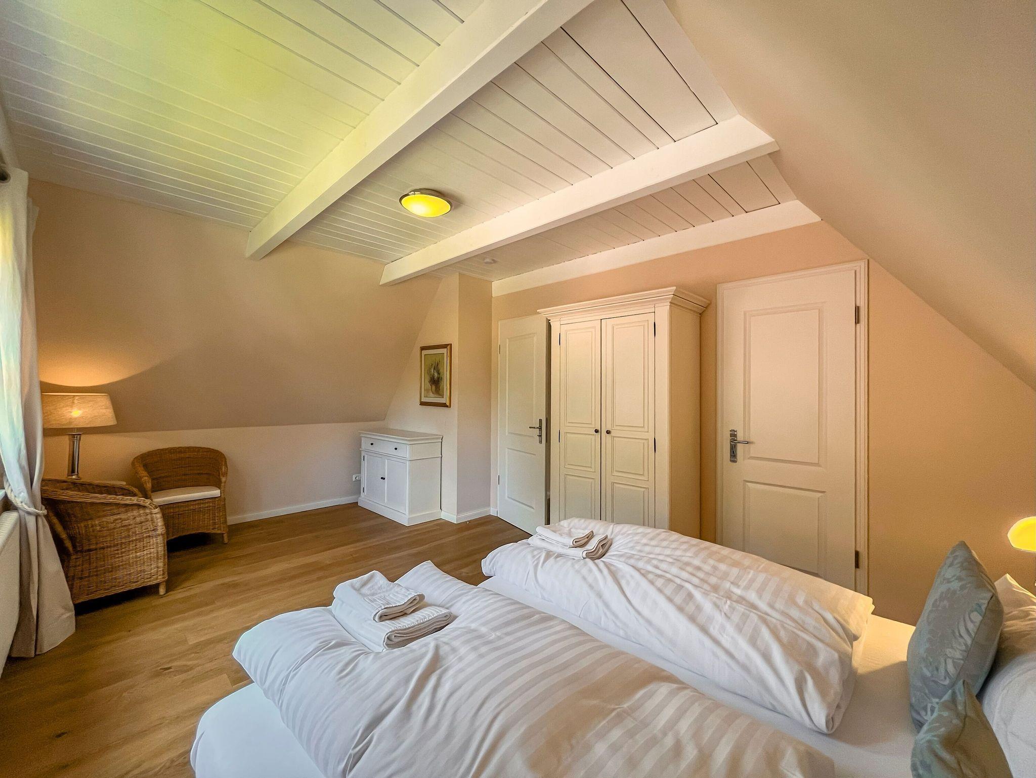 • Zwei Schlafzimmer mit komfortablen Doppelbetten, eines davon ausgestattet mit TV. Der Zugang zur Schlafgalerie im Dachgeschoss erfolgt über eine innenliegende Treppe innerhalb eines der Schlafzimmer.
