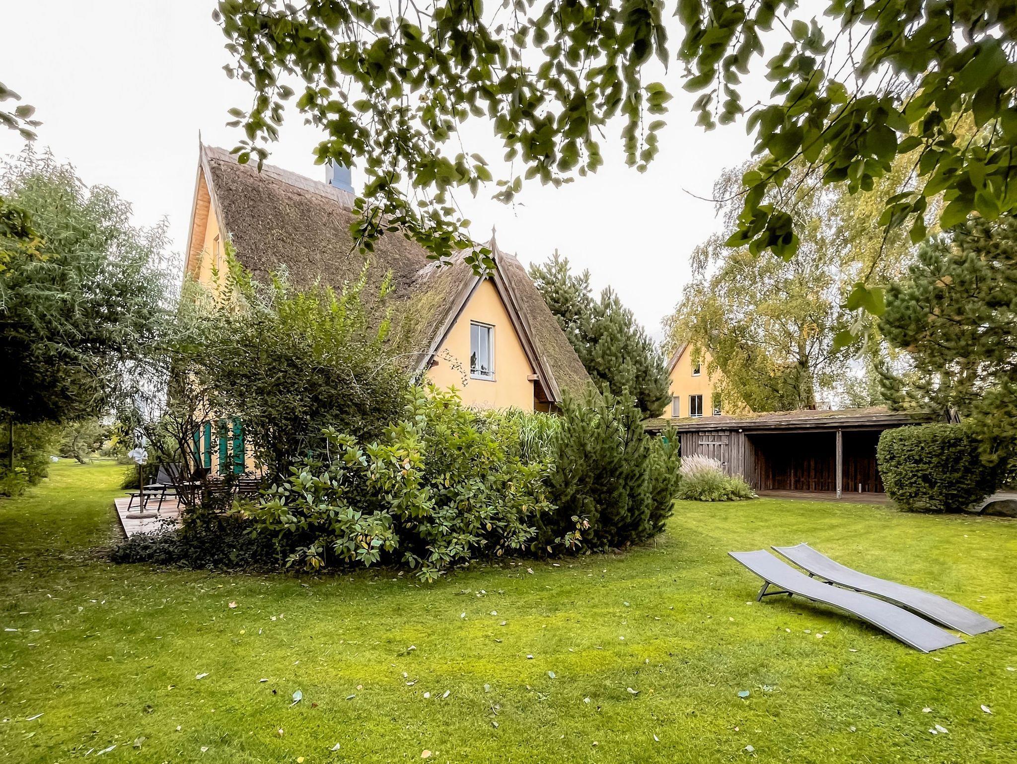 Charmantes, rollstuhlgerechtes Reetdachhaus mit Schwimmteich und großem Garten nahe Natur und Ostseestrand.