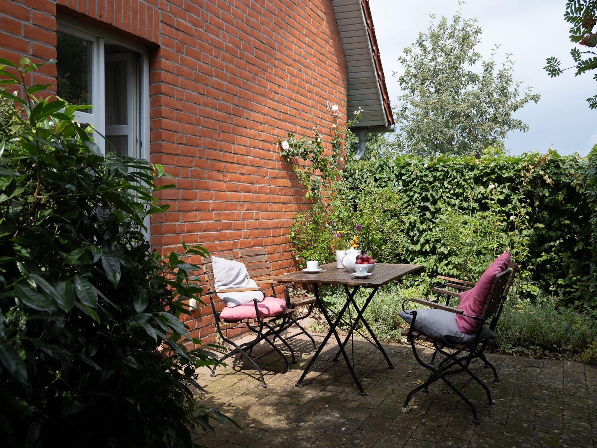 Wunderbar ruhig gelegen, umgeben von Wasser, Wiesen und Feldern und eingebettet in einen herrlichen Garten bieten die Ferienwohnungen mit eigenen Terrassen einen idealen Rückzugsort nach langen Inselerkundungen - zu jeder Jahreszeit.