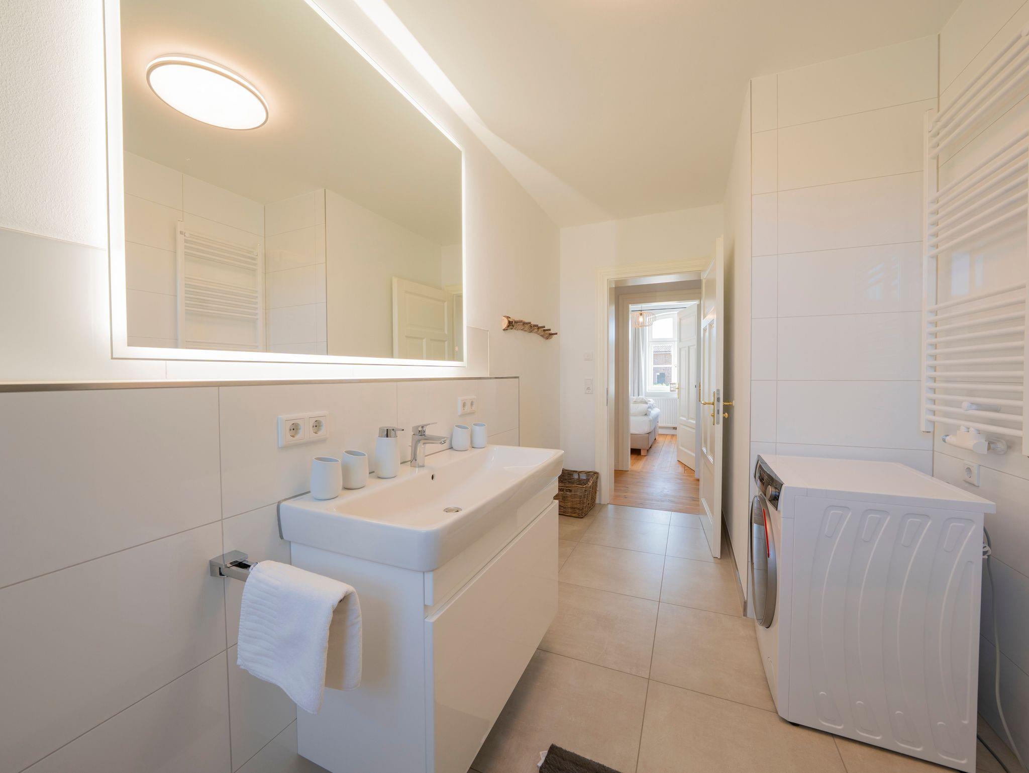 • Modernes Badezimmer: Mit Badewanne, Dusche, Waschtisch und WC sowie zusätzlichem Gäste-WC.