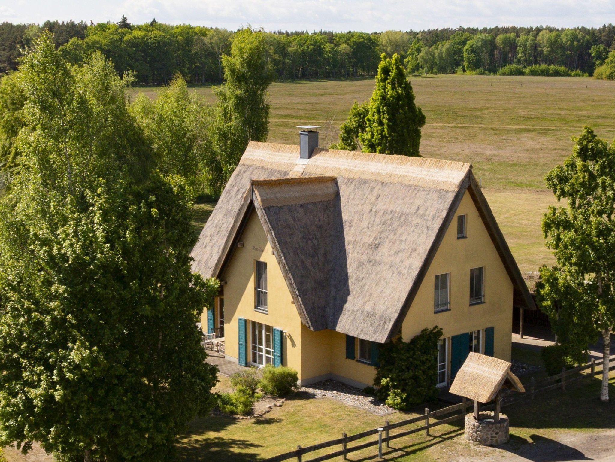 Charmantes, rollstuhlgerechtes Reetdachhaus mit Schwimmteich und großem Garten im idyllischen Achterland auf Usedom.