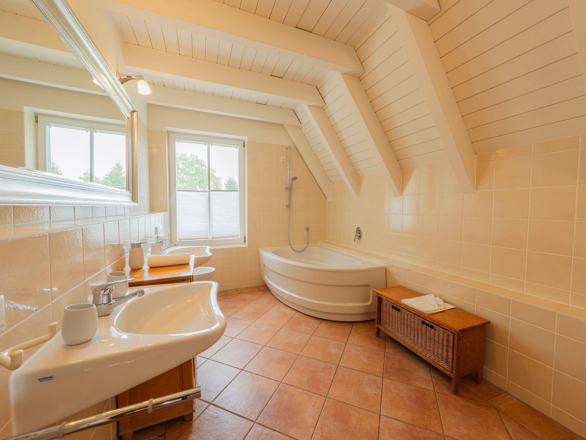• Geräumiges Badezimmer: Mit Eckbadewanne, Dusche, WC und Bidet