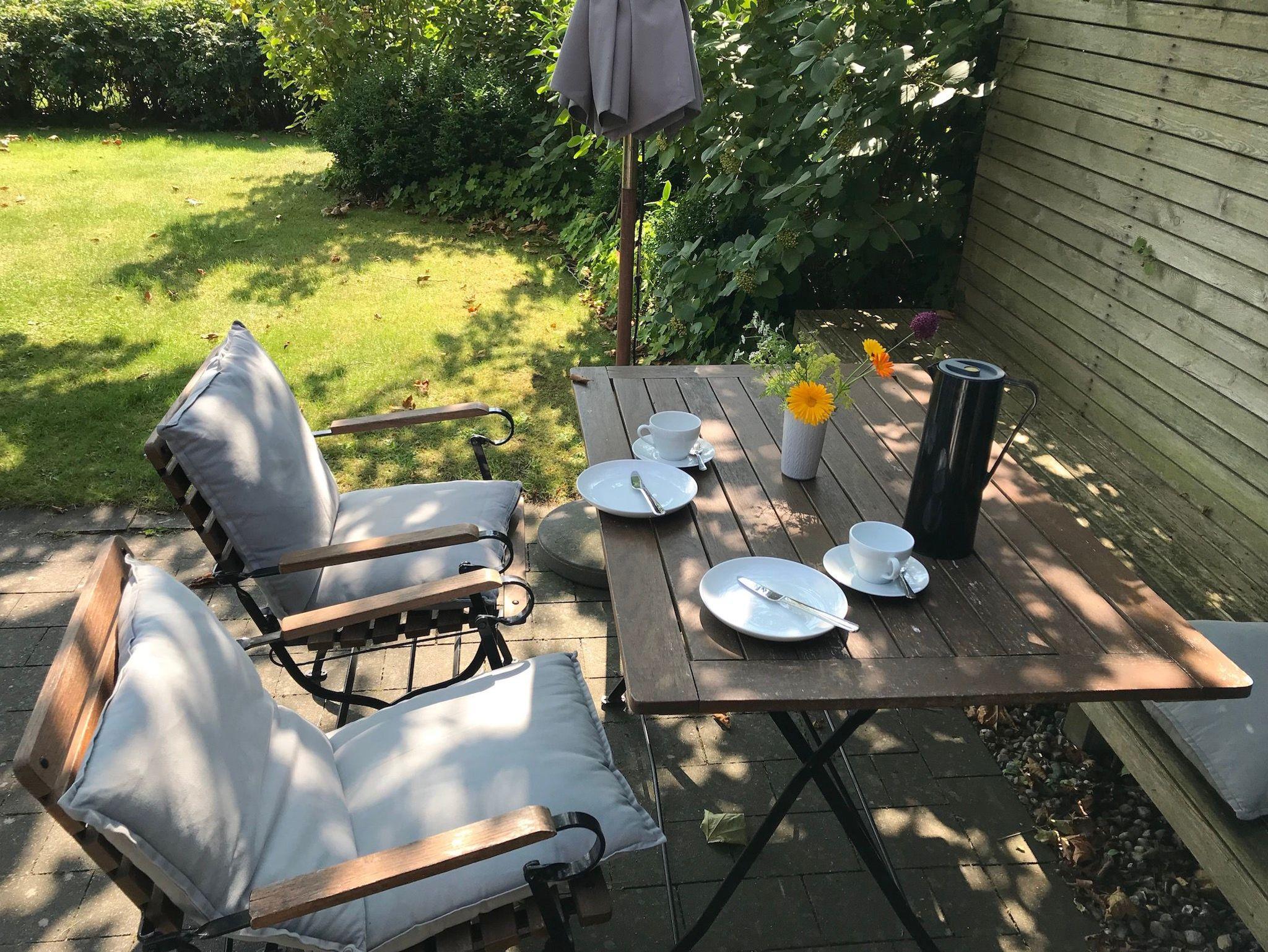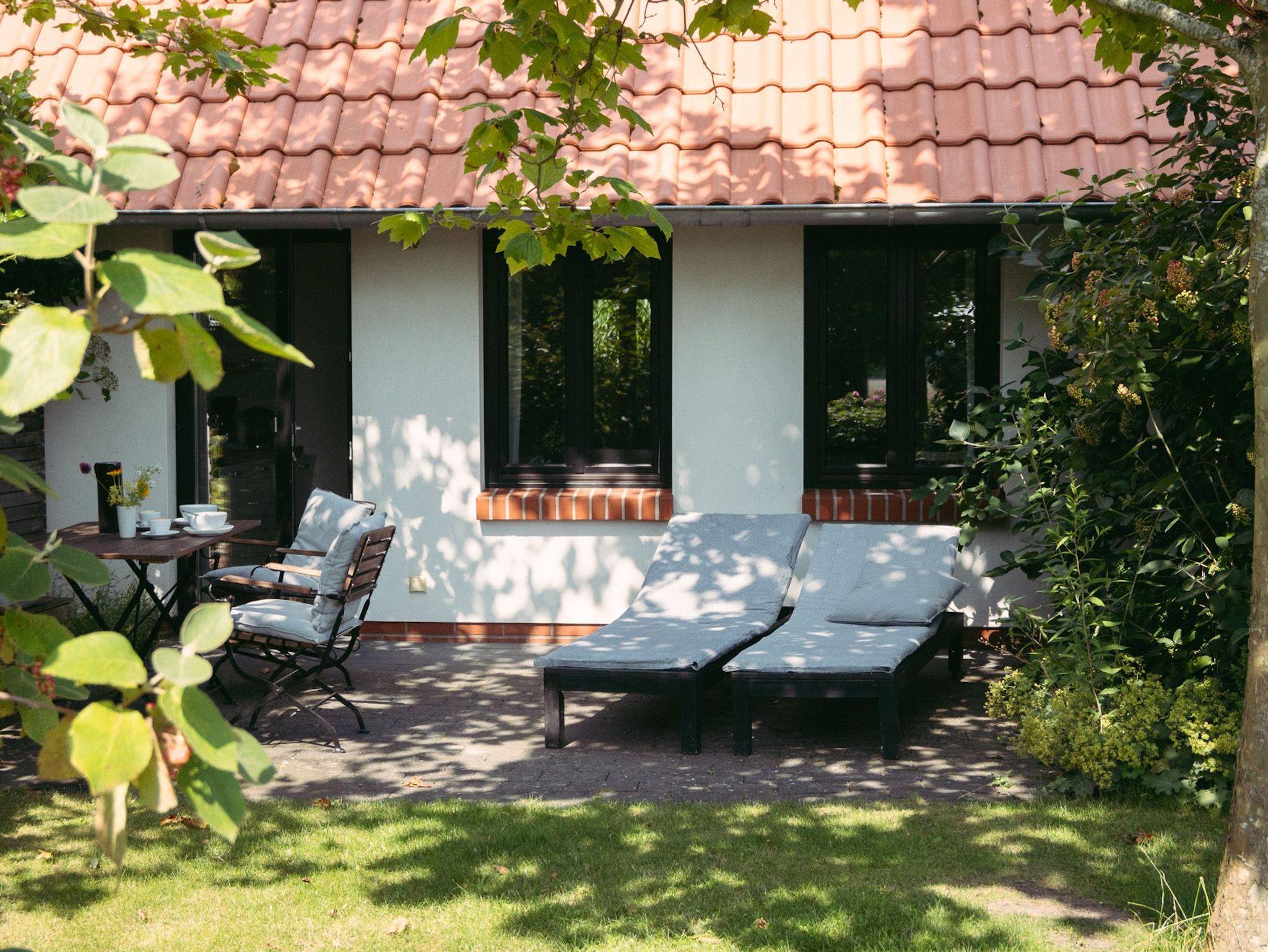 Hell und freundlich gestaltete Doppelhaushälfte in zweiter Reihe für max. 2 Personen mit separatem Eingang und eigener Terrasse in einem weitläufigen, nicht eingezäunten Garten.
