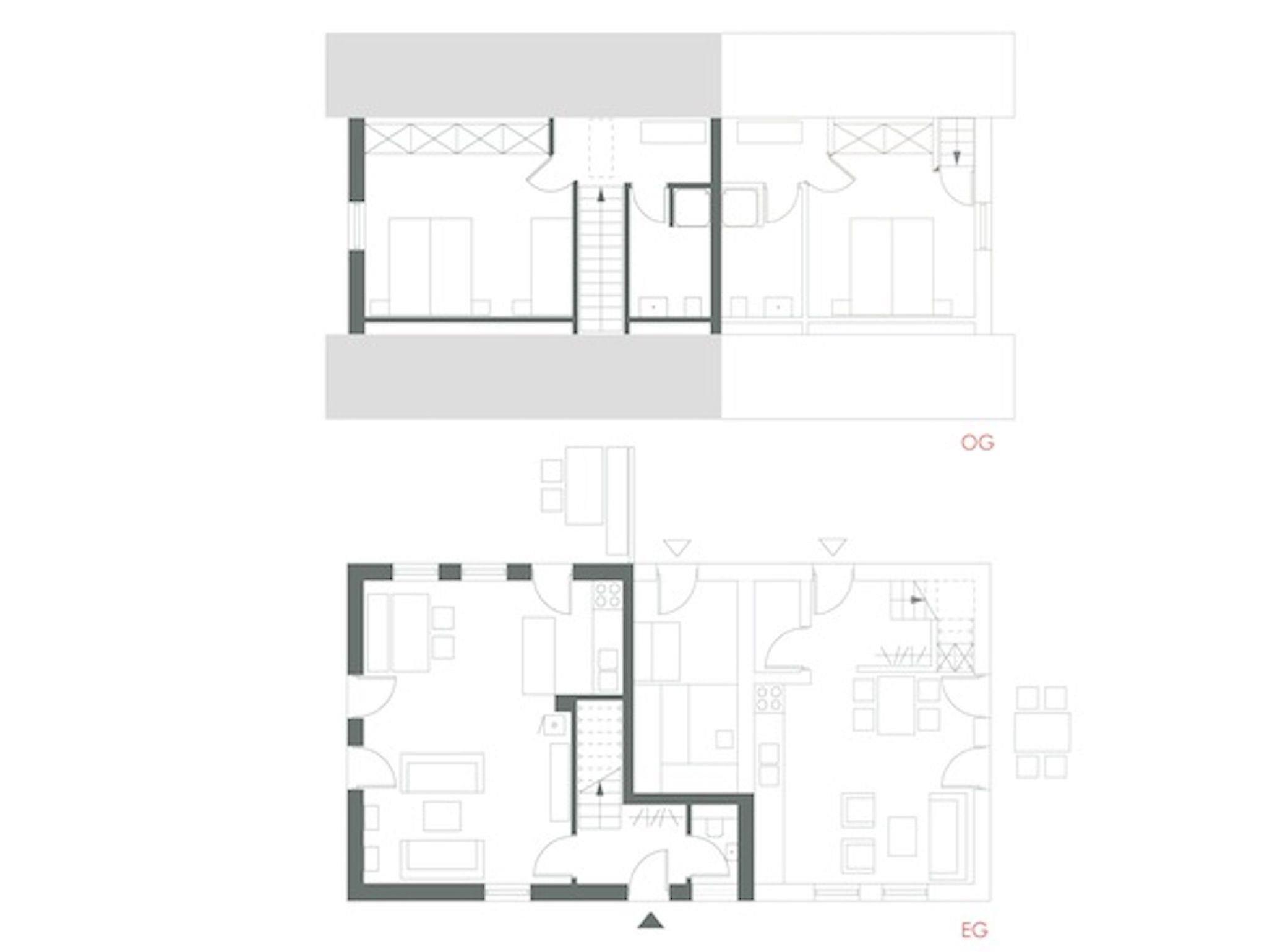 Im OG : 1 Schlafzimmer mit Doppelbett (180x200), Duschbad mit WC.