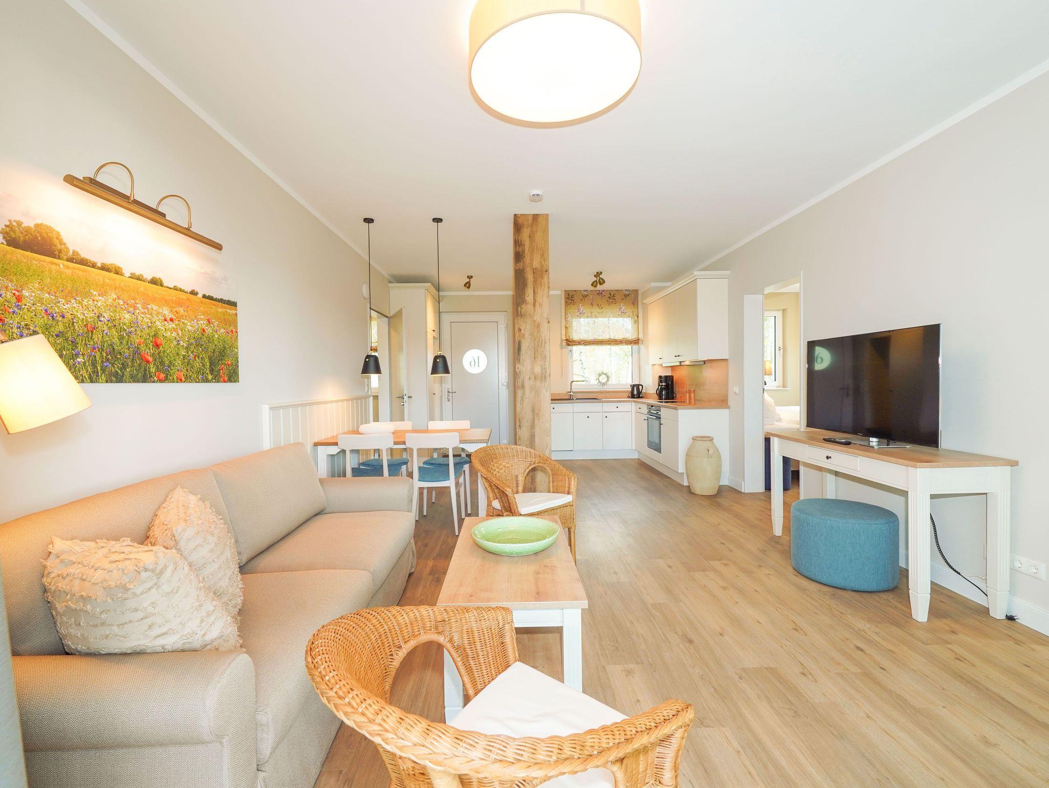 Die Hafen Suite ist barrierefrei, bietet reichlich Platz, Wohlfühlen und Entspannen wird hier leicht gemacht. Genießen Sie die Veranda mit dem Blick auf das Treiben im Hafen.