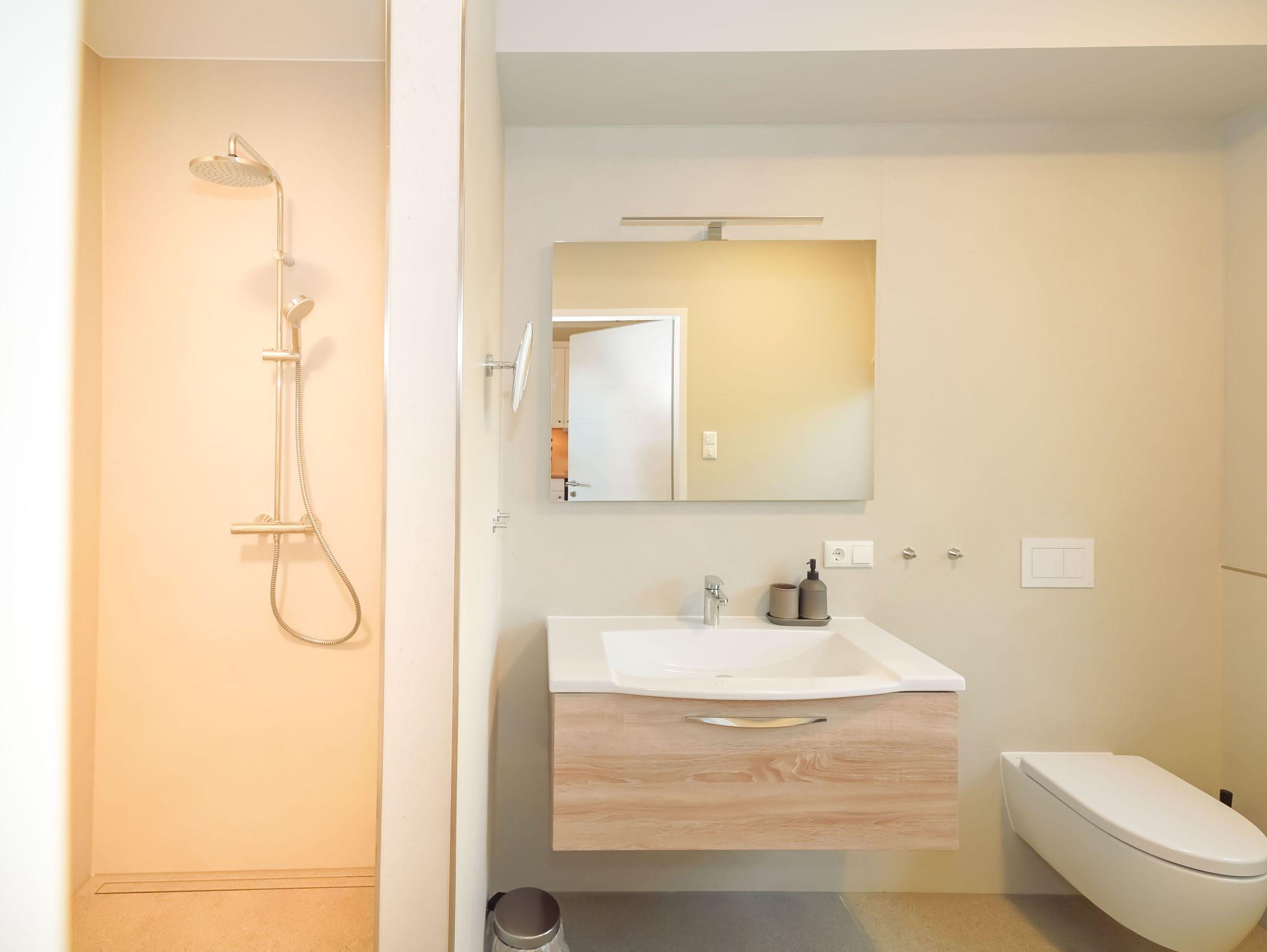 75m² Suite im EG, barrierefrei, bis zu 4 Personen. Schlafzimmer mit Doppel-Boxspringbett (180x200), 15 m² Veranda mit einmaligem Blick auf den Hafen. Nichtraucher-Suite. Hund möglich: 15€/Tag. Parkplatzund WLAN sind inklusive.Dachsauna mit Terrasse, Fitnessraum und Frühstück sind vor Ort zu buchbar. Wäschepaket und Endreinigung einmalig 139,- €.