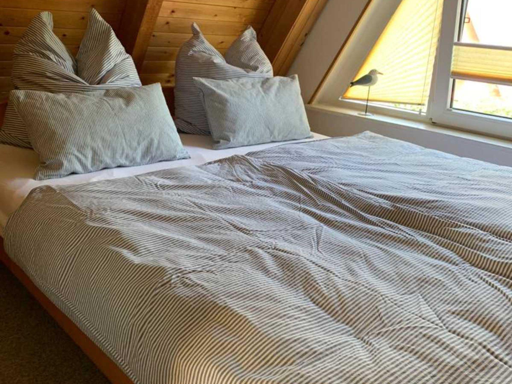 Das Ferienhaus (Finnhütte) ist reedgedeckt und besteht im EG aus einem großen Wohnbereich mit einer Küchenzeile. Dusche und WC sind in einem extra Raum im Haus integriert. Die Warmwasserbereitung und der Herd werden elektrisch betrieben. Im Wohnbereich befindet sich für kalte Tage ein Bullerjan. Im OG sind 2 abgetrennte Schlafräume für je 2 Personen. Auf dem Grundstück kann 1 PKW abgestellt werden. Aufbettungen auf gesonderte Nachfrage.