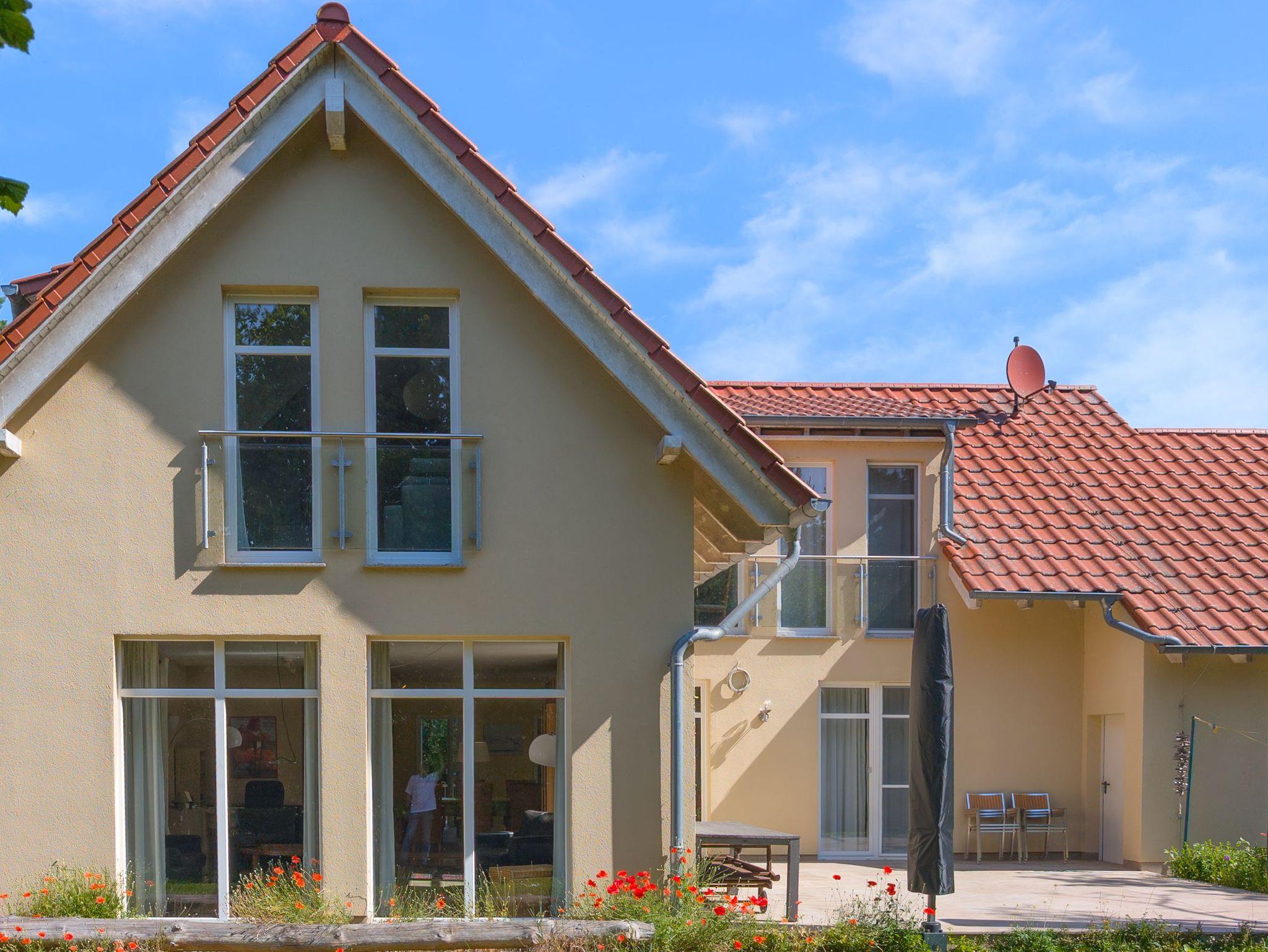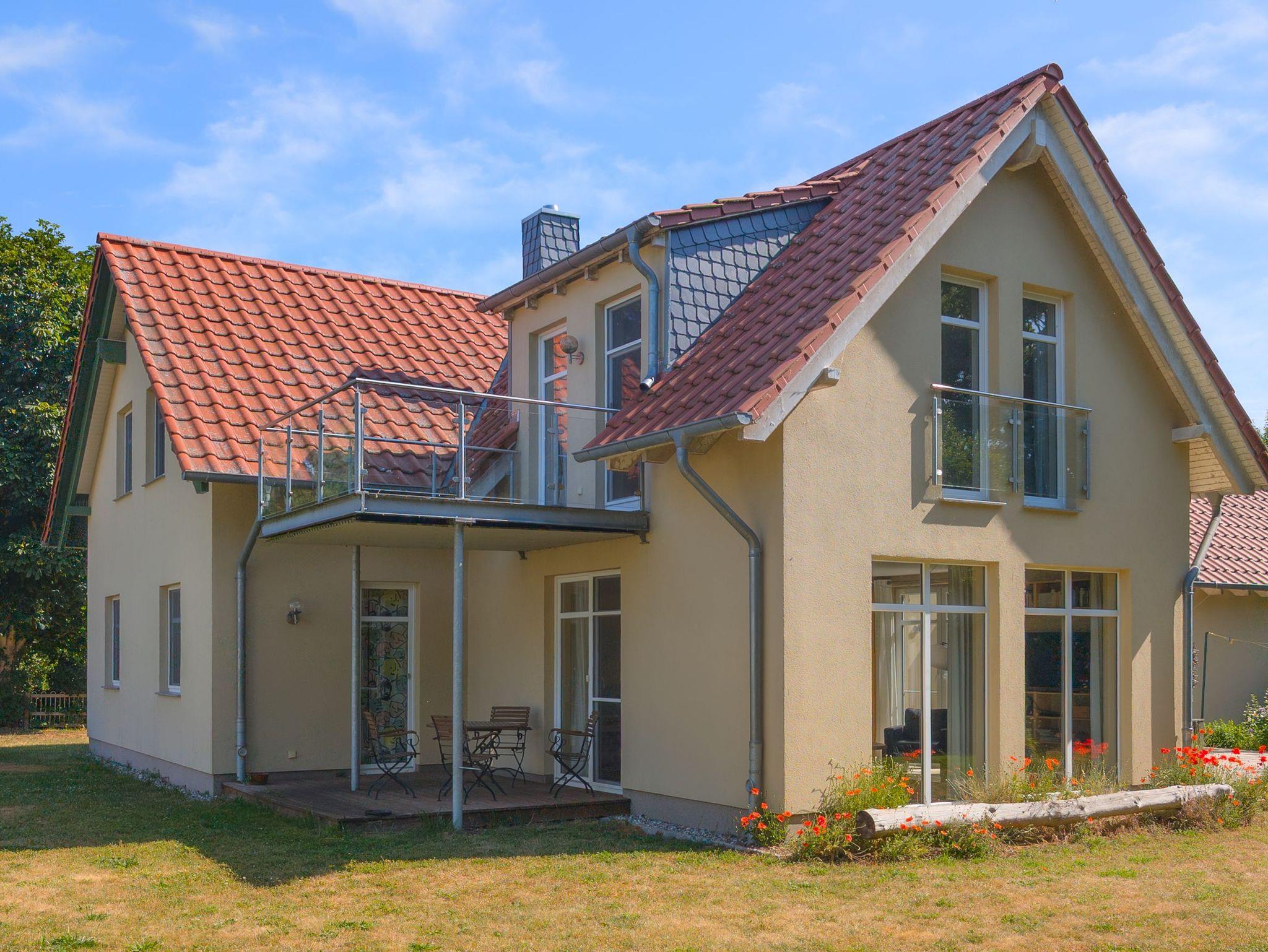 Das Haus befindet sich nur etwa 50 Meter vom Wasser entfernt in der zweiten Reihe der Siedlung. Die nach Süden ausgerichteten Terrassen und die großzügige Rasenfläche bieten eine besonders ruhige Atmosphäre, die durch den minimierten innerörtlichen Verkehr noch verstärkt wird. Die geräumige Wohnung (130 qm) ist komfortabel eingerichtet und verfügt über zwei Bäder (mit Toilette, Urinal und Dusche).
