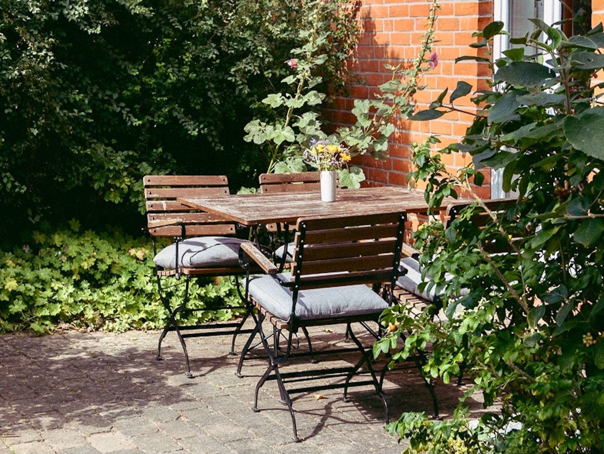 Wunderbar ruhig gelegen, umgeben von Wasser, Wiesen und Feldern und eingebettet in einen herrlichen Garten bieten die Ferienwohnungen mit eigenen Terrassen einen idealen Rückzugsort nach langen Inselerkundungen - zu jeder Jahreszeit.