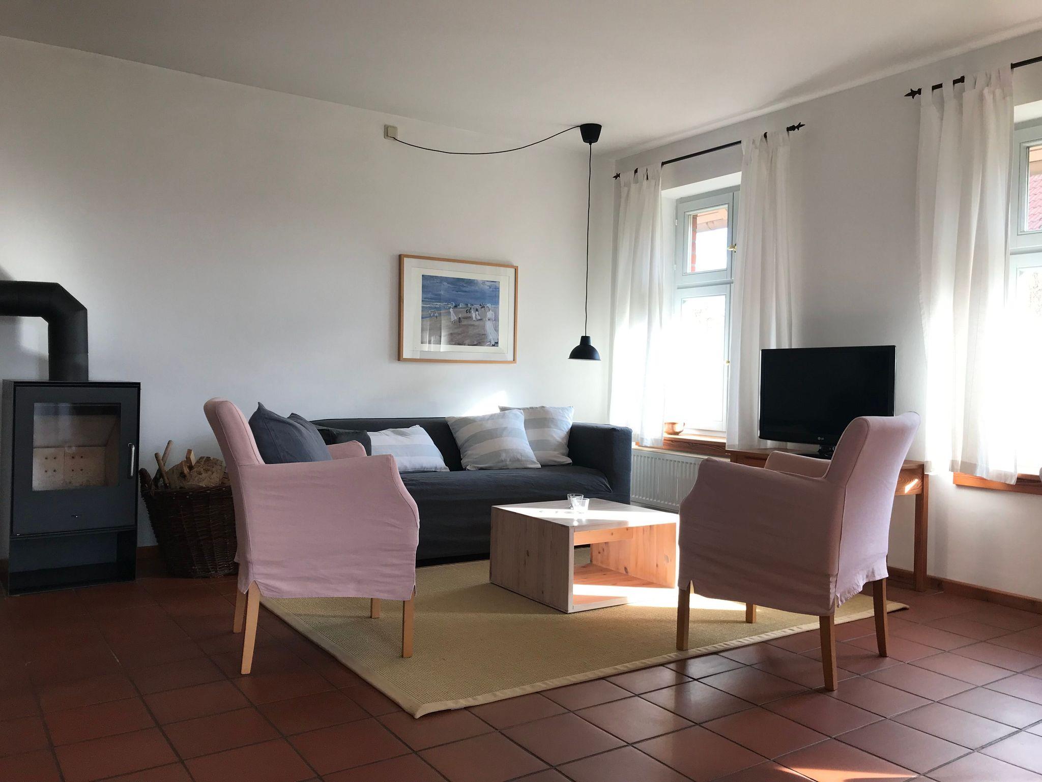 Hell und freundlich gestaltete Doppelhaushälfte für max. 4 Personen mit eigener Terrasse und eigenem Eingang in einem weitläufigen, nicht eingezäunten Garten am Dorfrand von Quilitz.