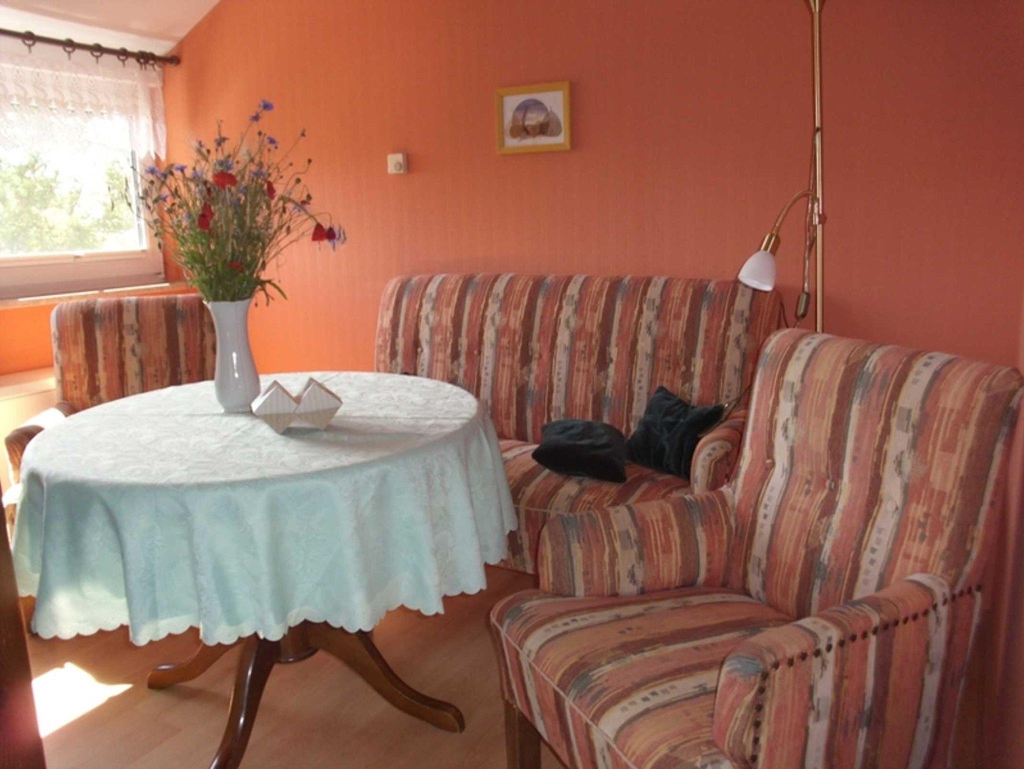 Die Ferienwohnung hat einen separaten Eingang. Sie verfügt über ein Wohnzimmer mit eingebauter Küchenzeile, 1 Schlafzimmer, DU/WC, Balkon. Grillmöglichkeit und Parkplatz sind vorhanden. Für die Freizeitgestaltung stehen Ihnen Federballspiel, Tischtennisplatte, Schaukel, Bocciaspiel und ähnliche Spiele zur Verfügung.