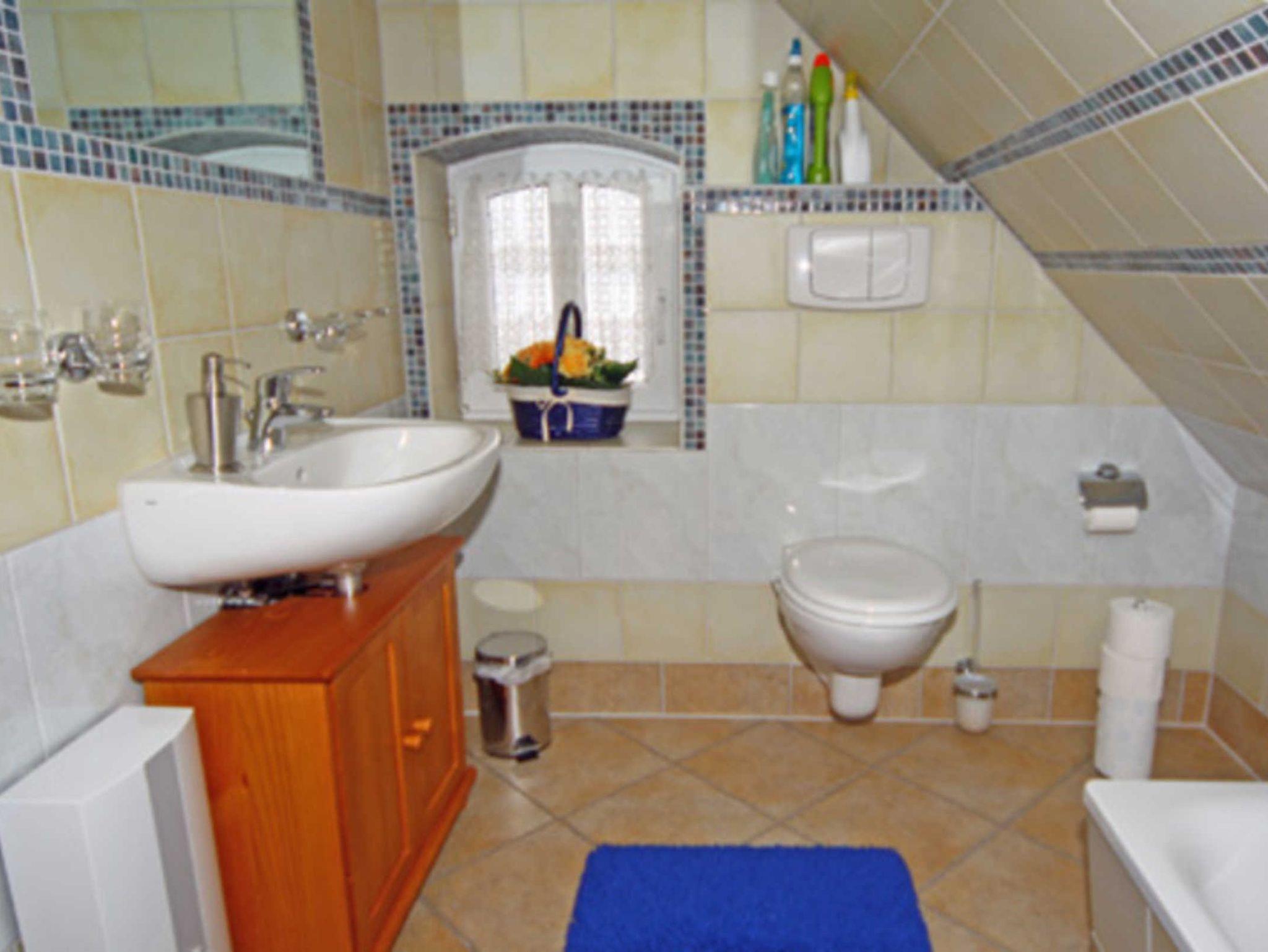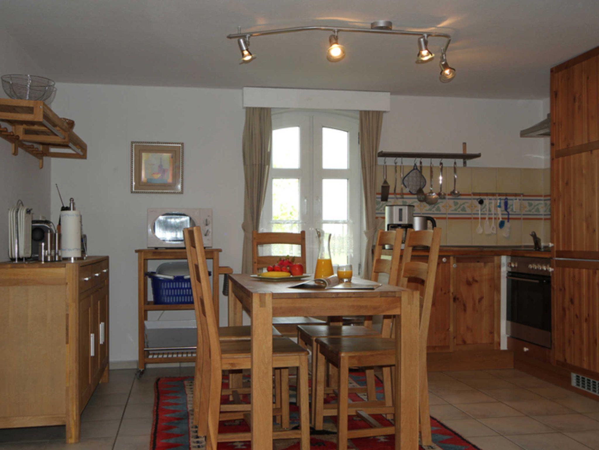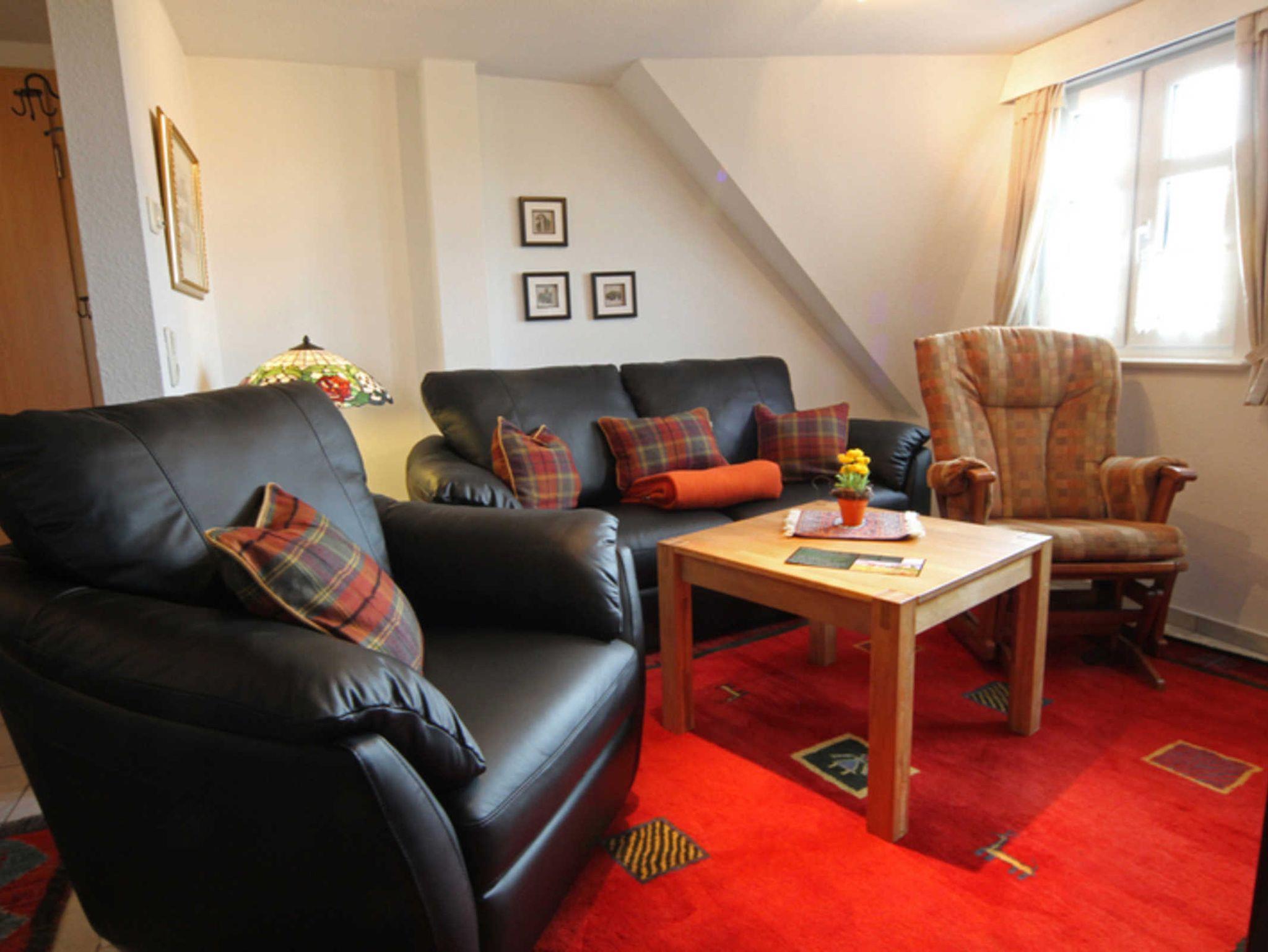 Die komfortable Nichtraucher-Fewo befindet sich im Hauptkomplex der Feriewohnanlage. Durch einen separaten Eingang gelangen Sie in den Gemeinschaftsflur der zu vier Wohnungen führt. Die Fewo liegt im DG und hat einen gemütlichen Wohnbereich mit Couchgarnitur, Stereoanlage, DVD-Player und SAT-TV, sowie einen vollständigen Küchenbereich mit Ceranfeld, Backofen, Geschirrspüler, Kühl-/Gefrierkombination, Mikrowelle, Kaffeemaschine, Toaster, Wasserkocher und Geschirr. Das Bad ist ausgestattet mit einer Dusche, Badewanne, WC, und Haarfön. Das Schlafzimmer ist mit Ehebetten und das Kinderzimmer mit einem Tandembetten ausgestattet. In der Fewo sind Dachschrägen vorhanden, die aber die Bewegungsfreiheit nicht einschränken. Genießen Sie in unseren 2500 qm großen Garten z.B. Ihr Frühstück. Grillmöglichkeit im Garten nach Absprache möglich.