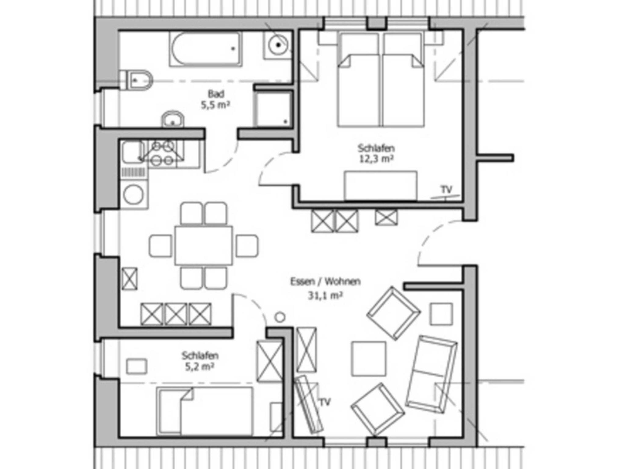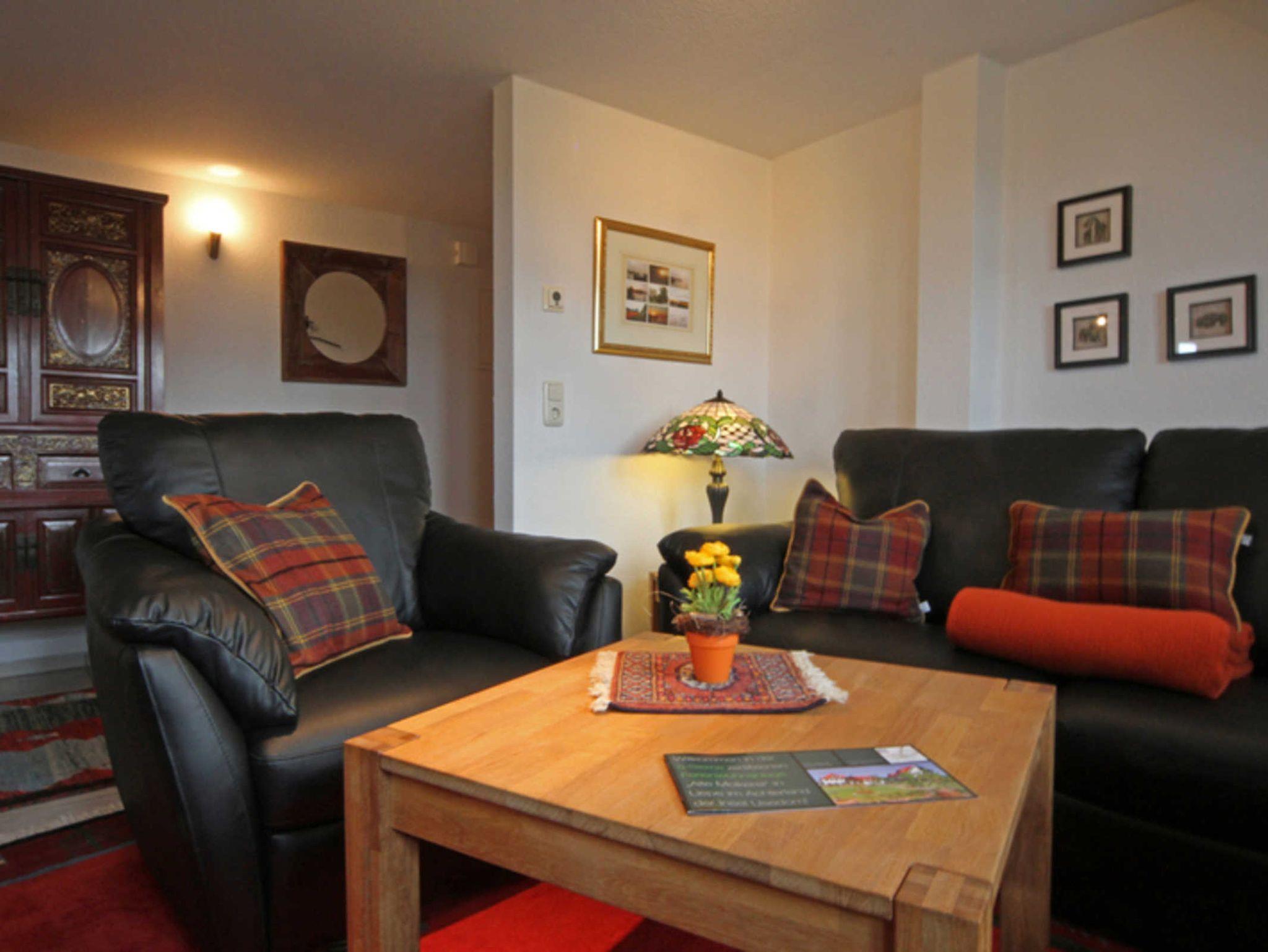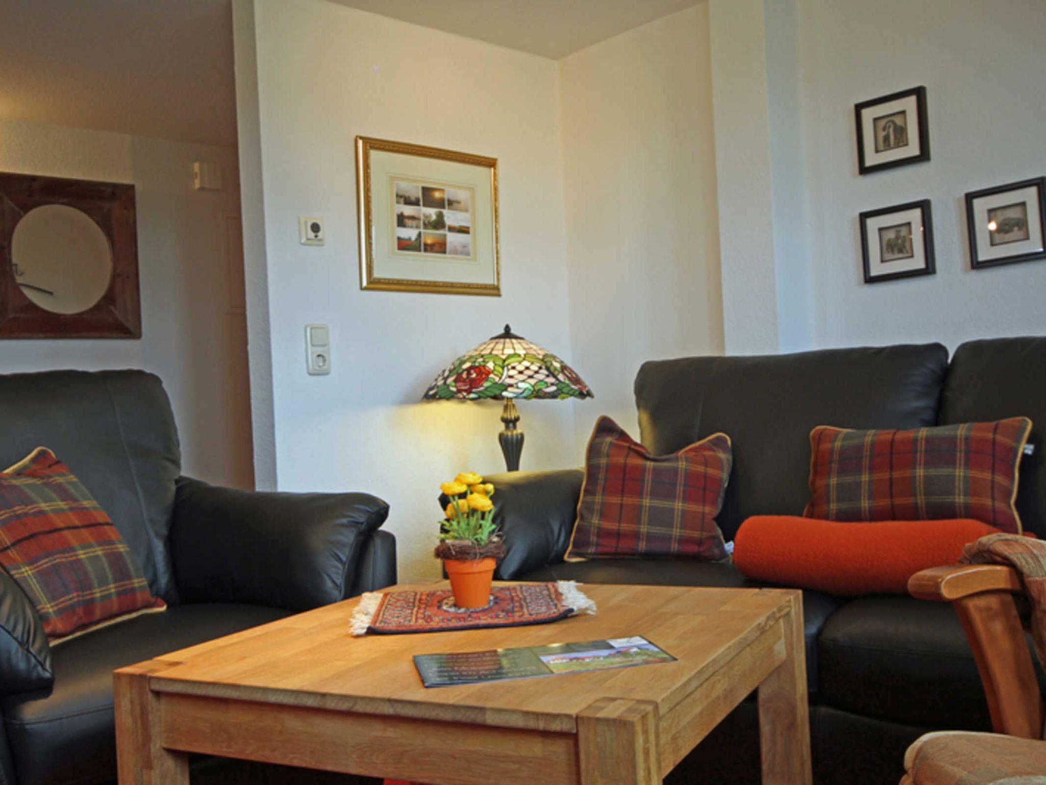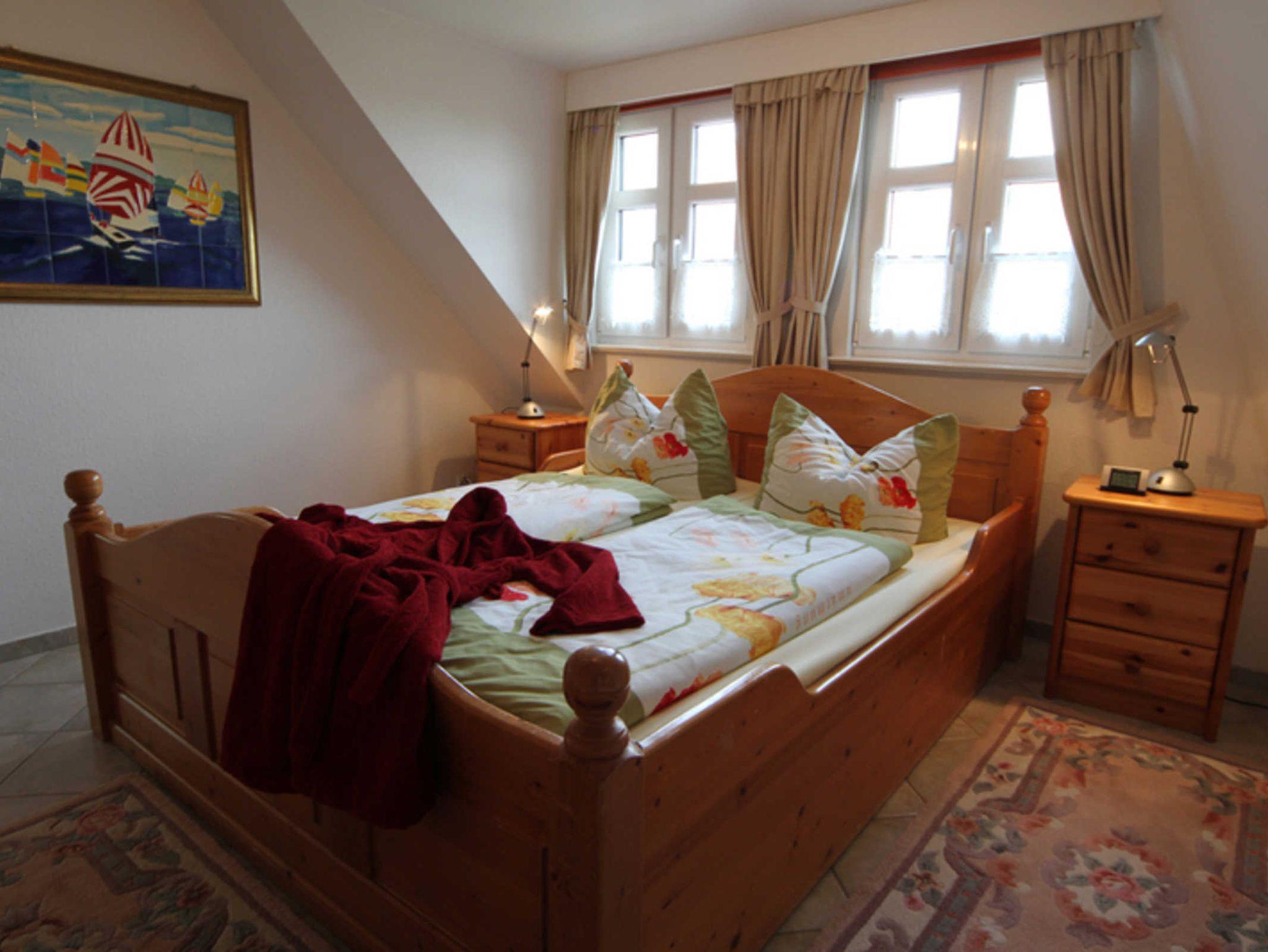 Die komfortable Nichtraucher-Fewo befindet sich im Hauptkomplex der Feriewohnanlage. Durch einen separaten Eingang gelangen Sie in den Gemeinschaftsflur der zu vier Wohnungen führt. Die Fewo liegt im DG und hat einen gemütlichen Wohnbereich mit Couchgarnitur, Stereoanlage, DVD-Player und SAT-TV, sowie einen vollständigen Küchenbereich mit Ceranfeld, Backofen, Geschirrspüler, Kühl-/Gefrierkombination, Mikrowelle, Kaffeemaschine, Toaster, Wasserkocher und Geschirr. Das Bad ist ausgestattet mit einer Dusche, Badewanne, WC, und Haarfön. Das Schlafzimmer ist mit Ehebetten und das Kinderzimmer mit einem Tandembetten ausgestattet. In der Fewo sind Dachschrägen vorhanden, die aber die Bewegungsfreiheit nicht einschränken. Genießen Sie in unseren 2500 qm großen Garten z.B. Ihr Frühstück. Grillmöglichkeit im Garten nach Absprache möglich.