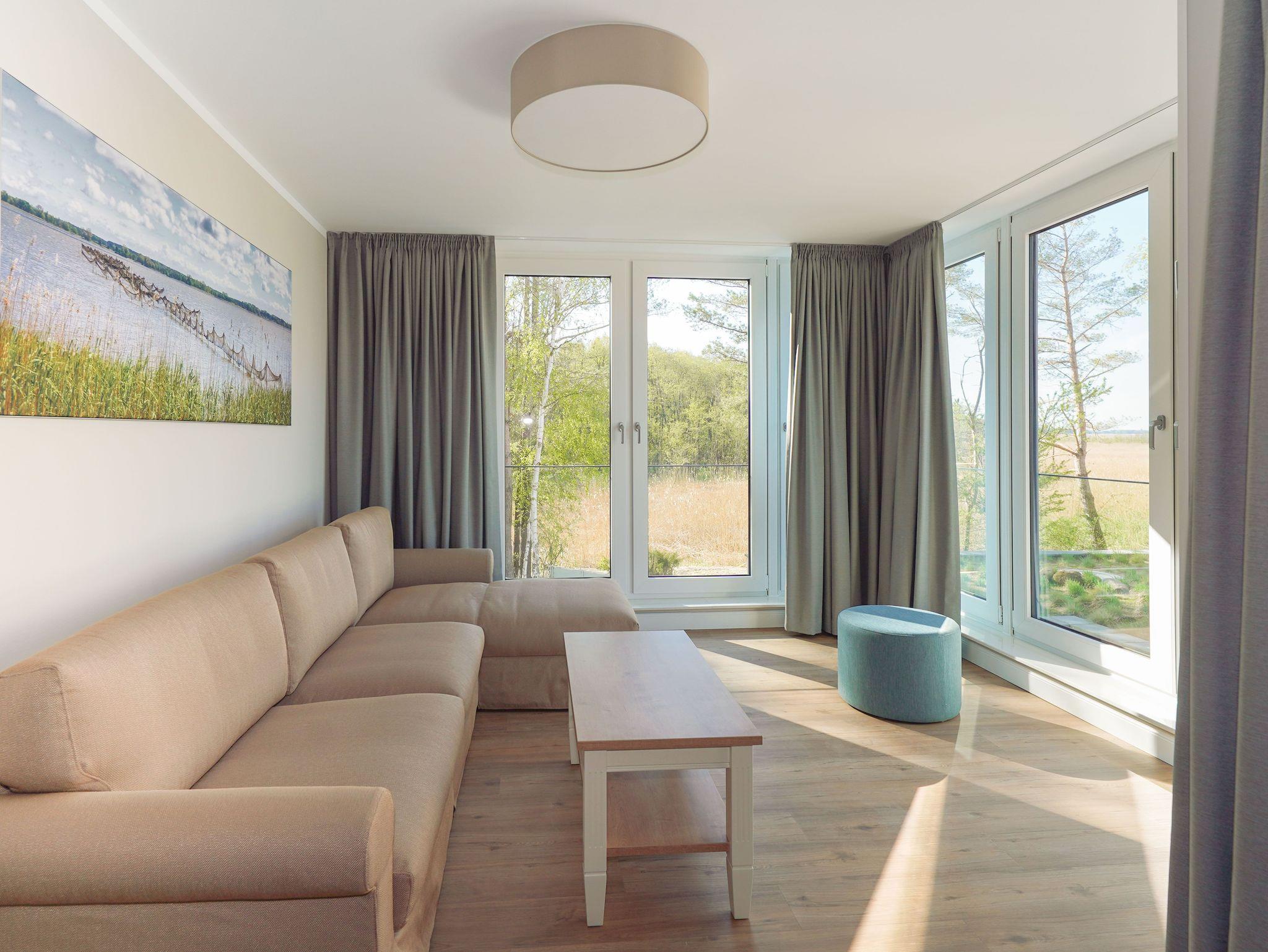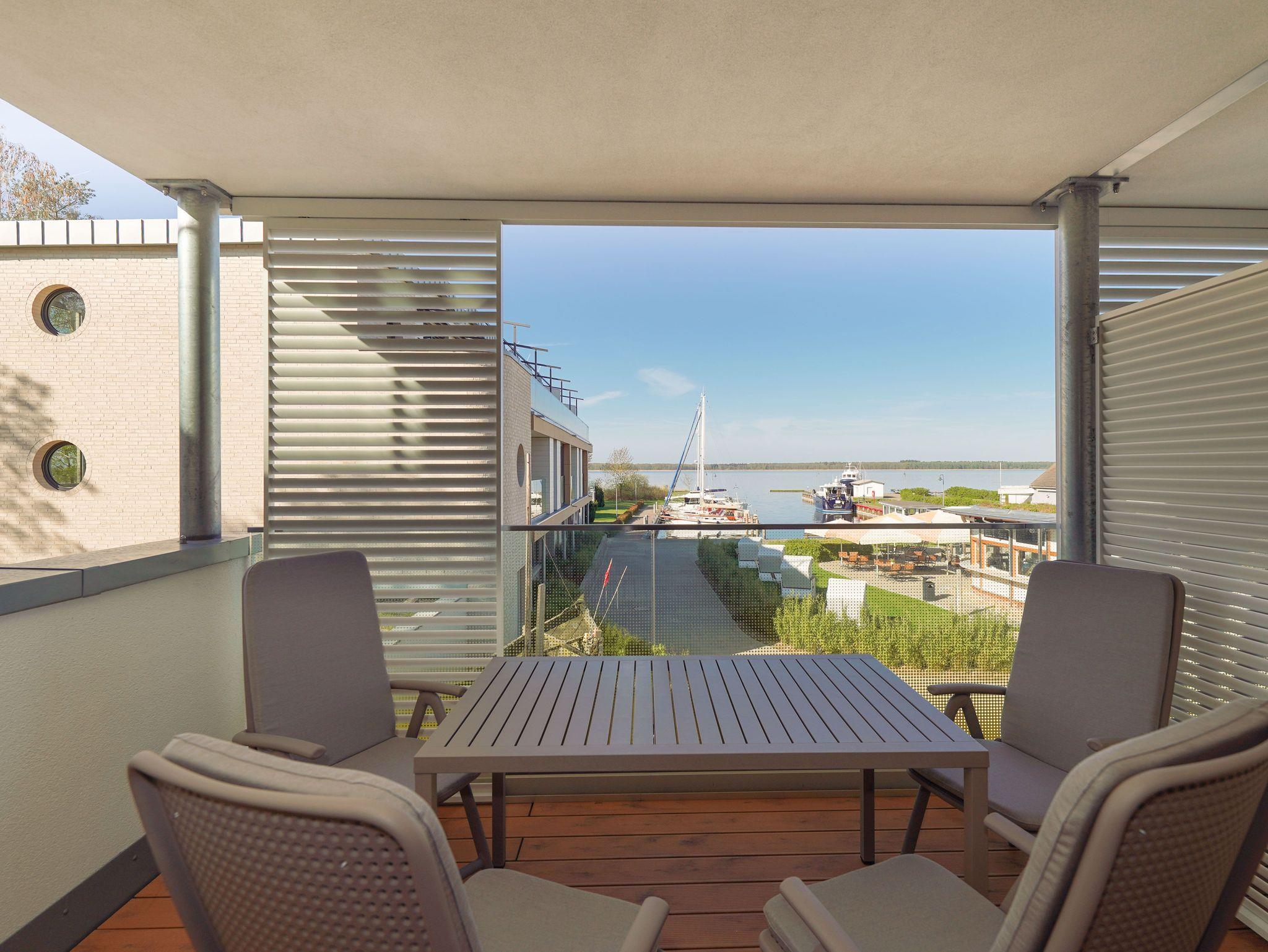 Genießen Sie die 5-Sterne Kadetten Suite in Rankwitz mit Hafenblick, Sauna, Fitnessraum und Balkon direkt am Wasser.