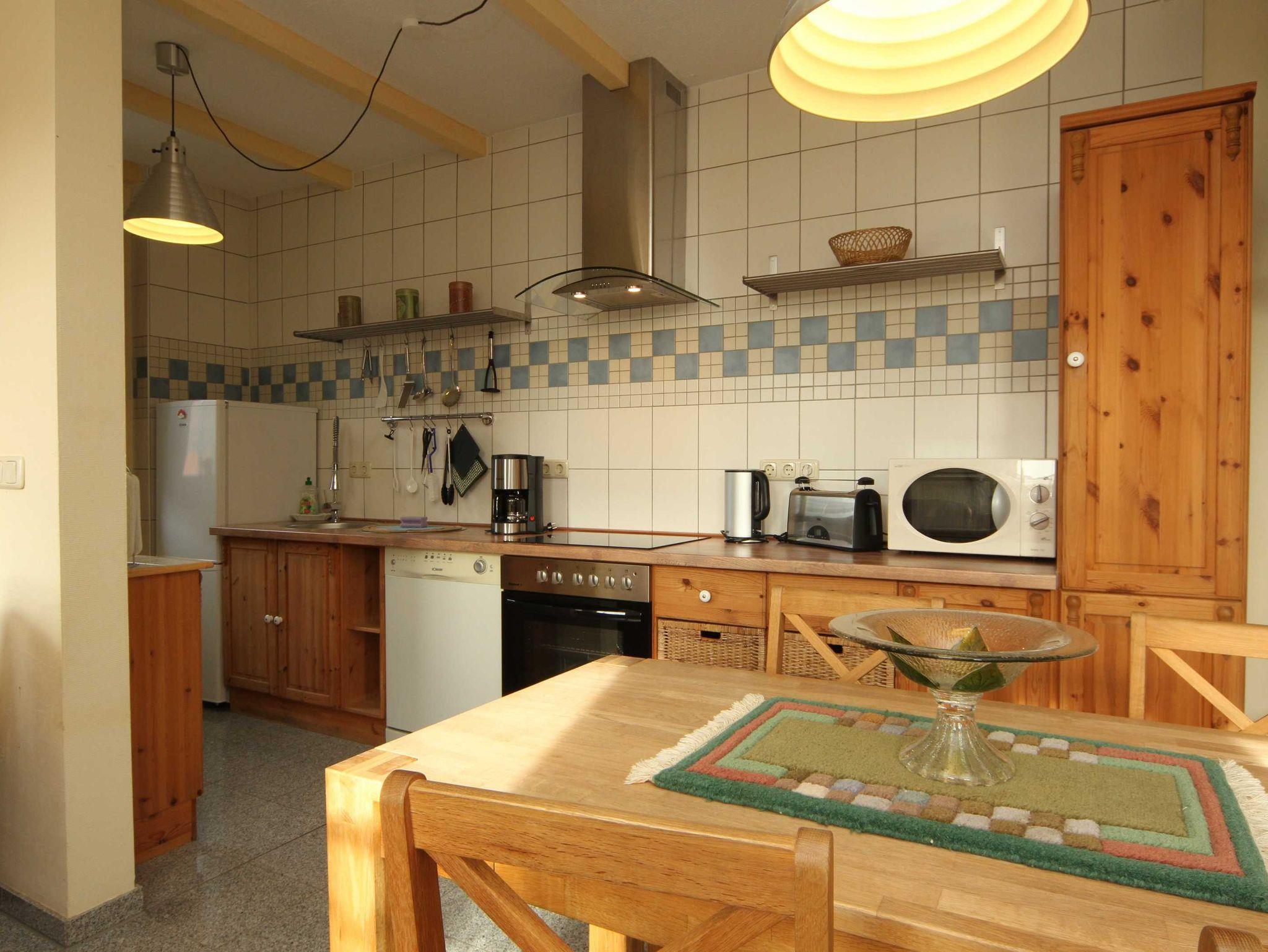 Von diesem gelangen Sie ins Bad und in den Küchen-, Ess- und Wohnbereich. Das Bad ist ausgestattet mit Dusche, WC, Haarfön. Vom Essbereich gelangen Sie in den gemütlichen Wohnbereich mit Couchgarnitur und Sat-TV,Stereoanlage sowie in den vollständigen Küchenbereich mit Ceranfeld, Backofen, Geschirrspüler, Kühl-/Gefrierkombination, Mikrowelle, Kaffeemaschine, Toaster, Wasserkocher und Geschirr.