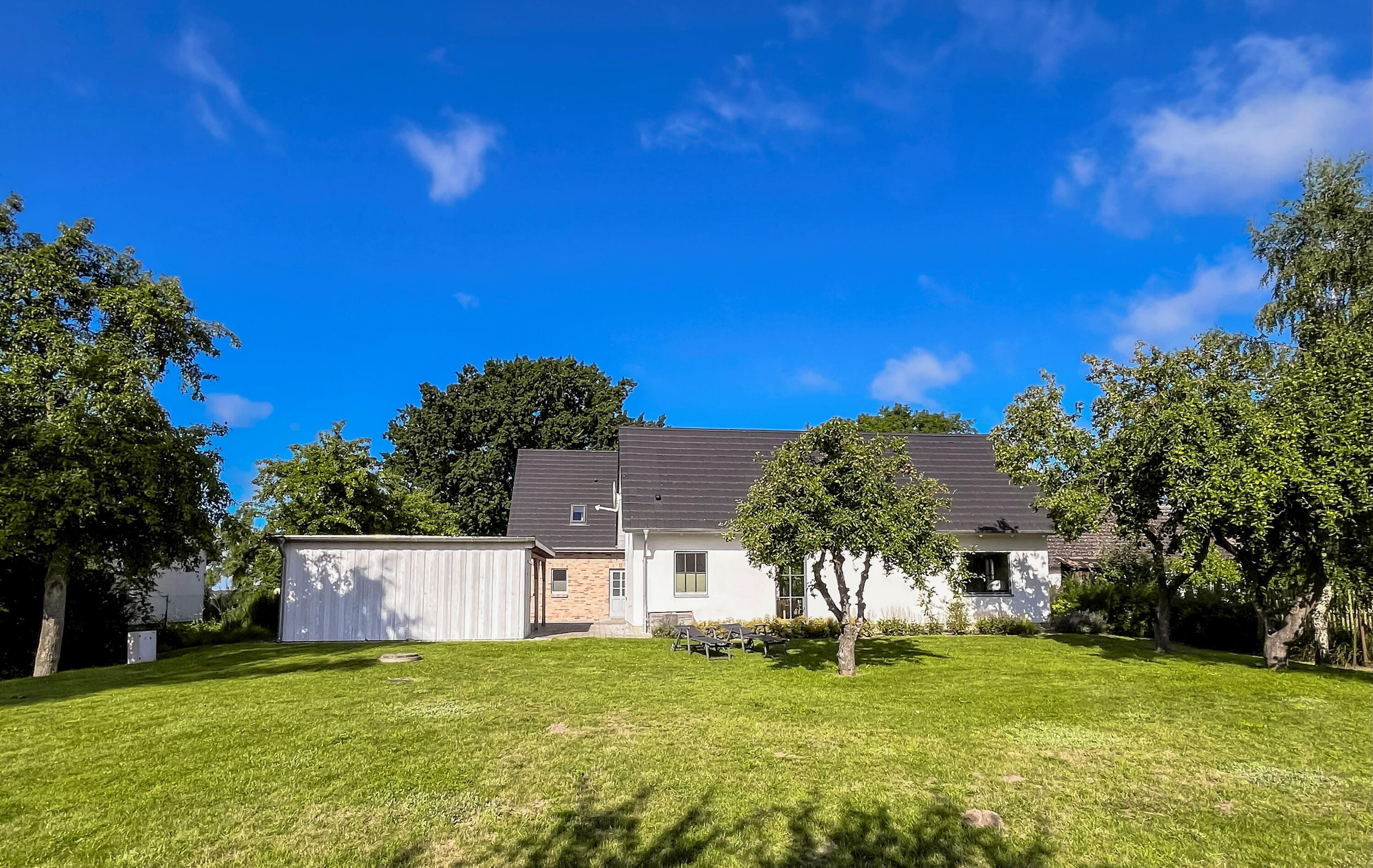 Der weitläufige Garten mit liebevoll angelegten Bereichen lädt zum Entspannen ein.