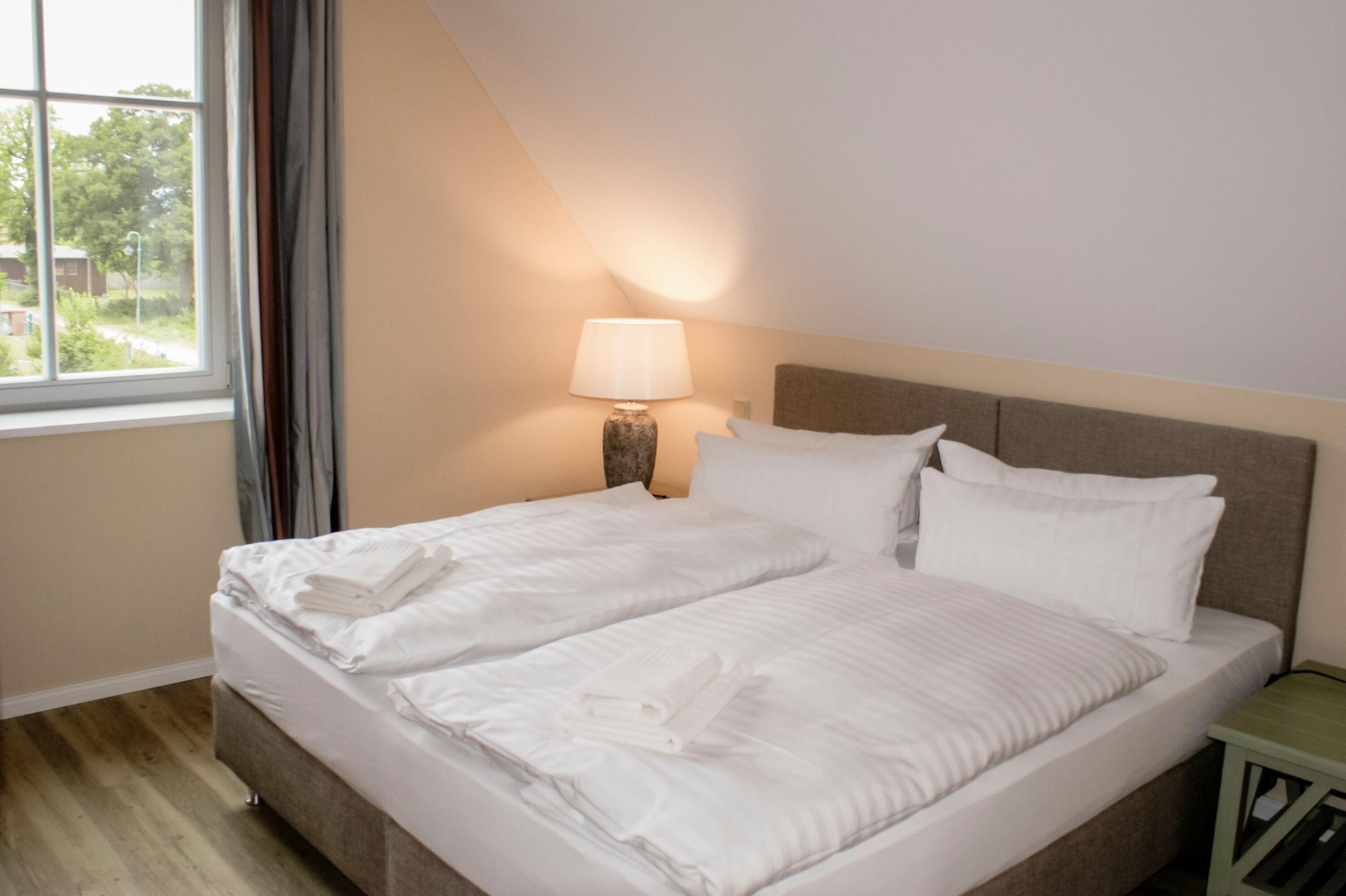 1 Schlafzimmer mit großem Doppelboxspringbett