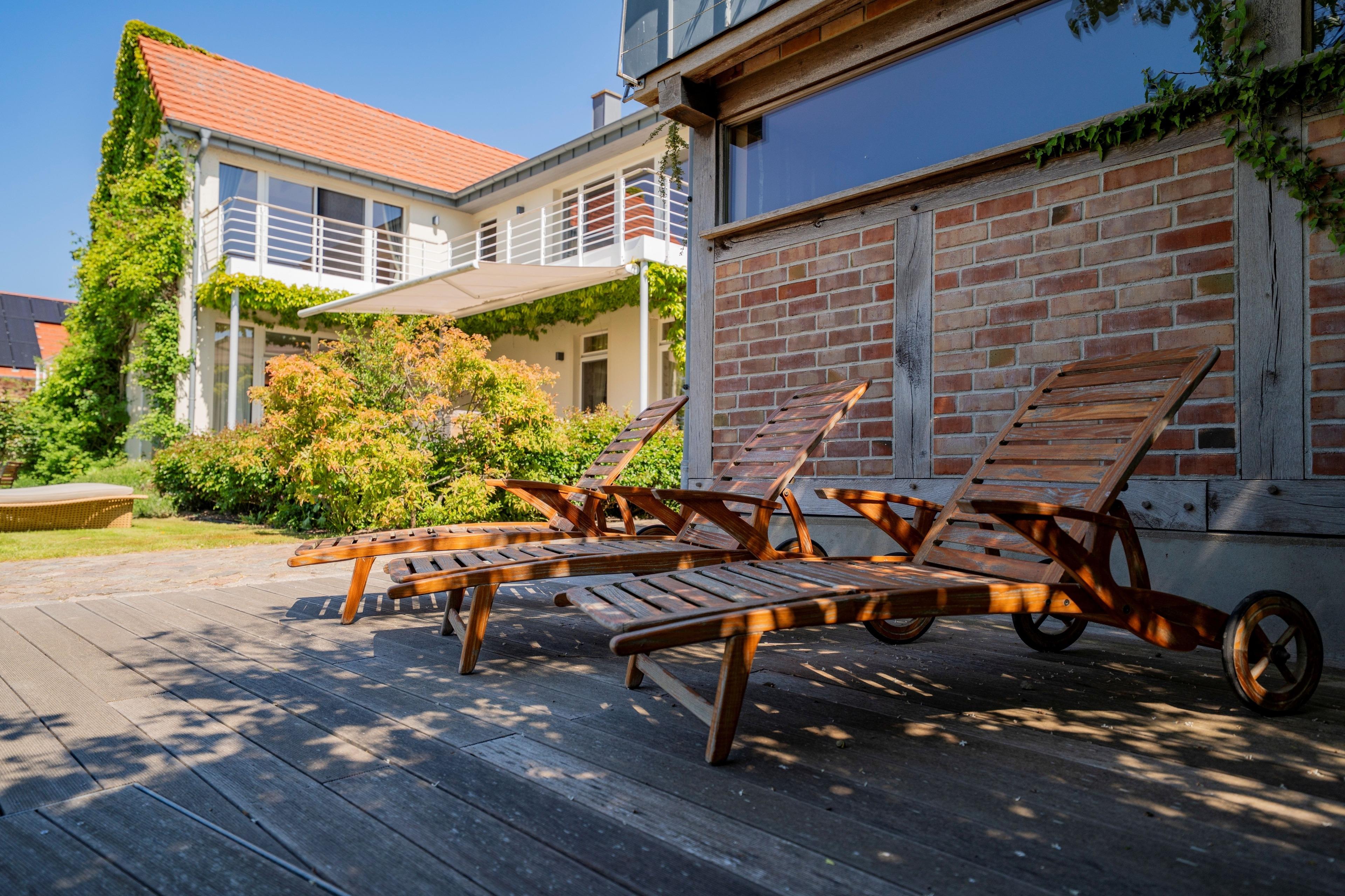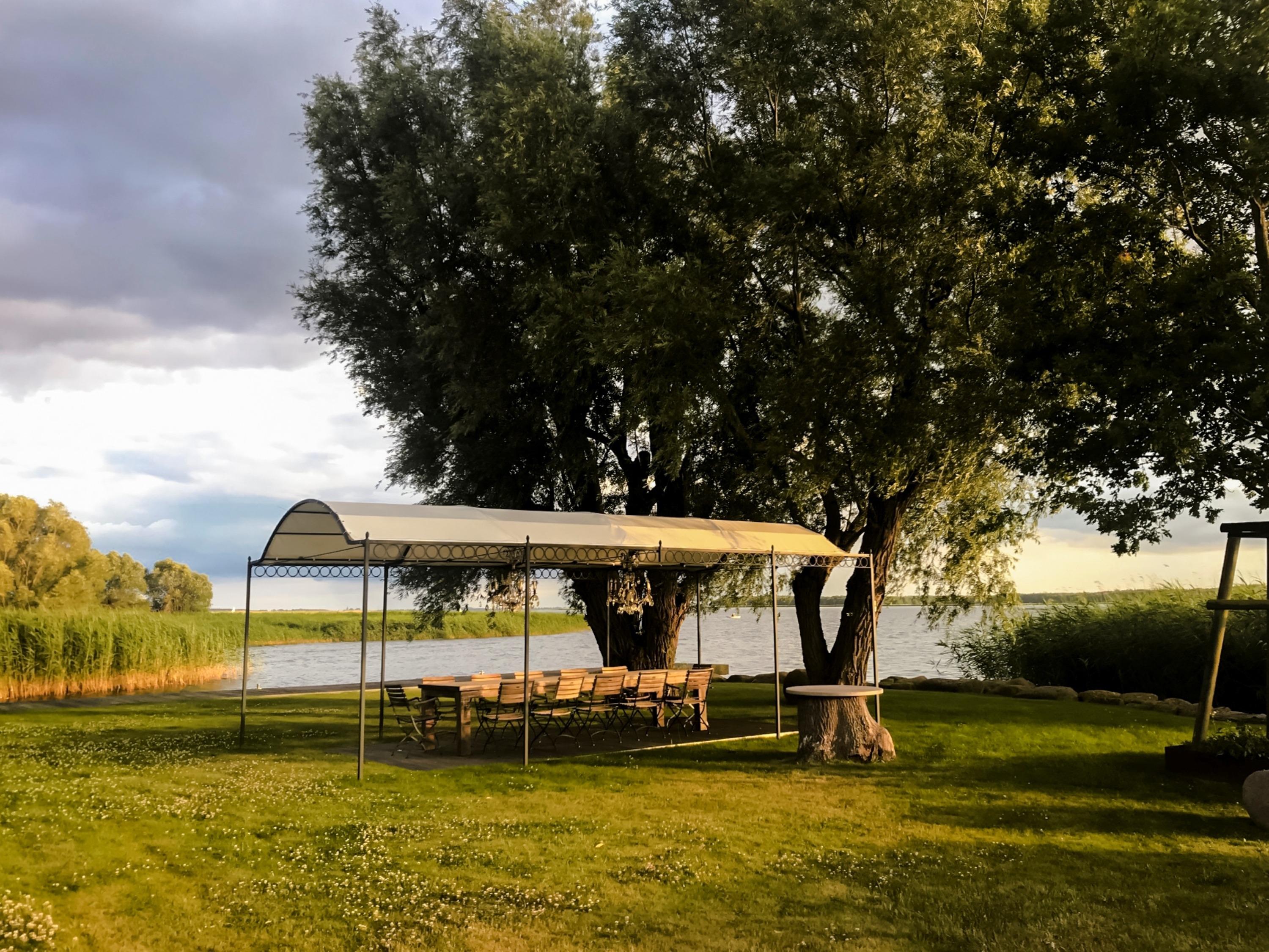 Terrassen und Sitzbereiche: Verschiedene Sitzmöglichkeiten auf der Terrasse, der Liegewiese oder direkt am Wasser bieten Raum für entspannte Stunden. Ein Feuerkorb am Wasser lädt zu stimmungsvollen Abenden ein.