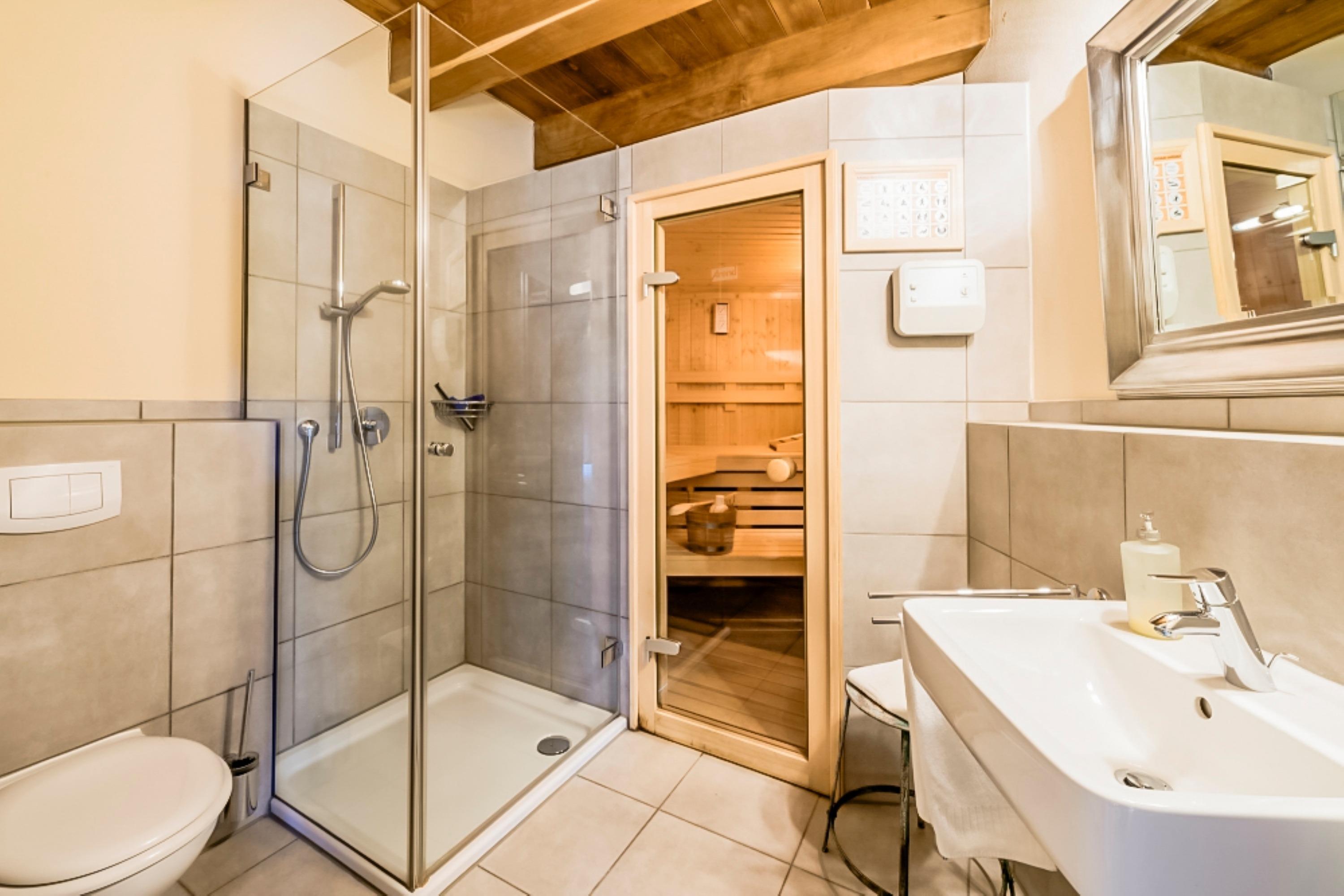 Saunabad: Mit Dusche und WC für entspannende Wellnessmomente