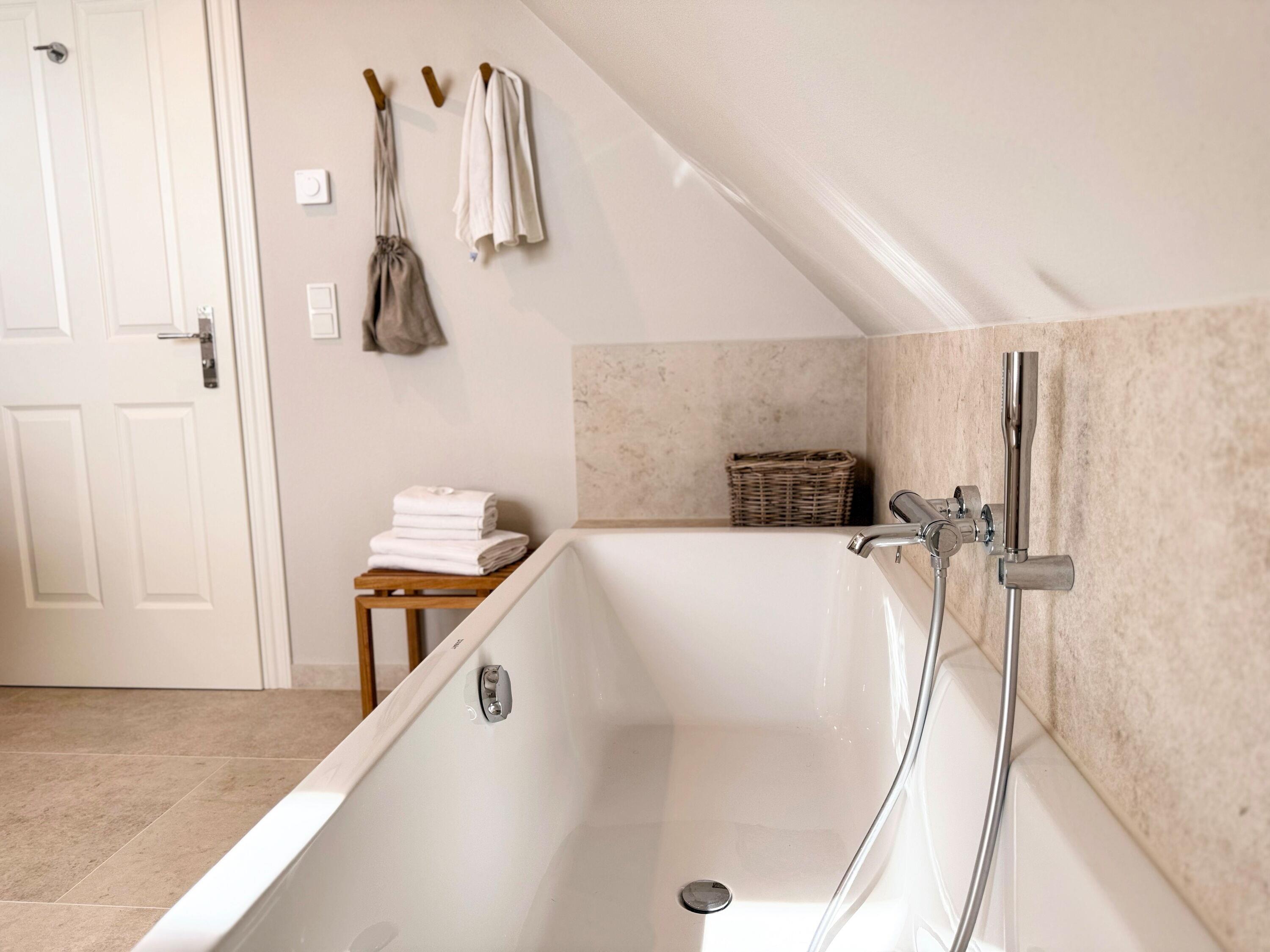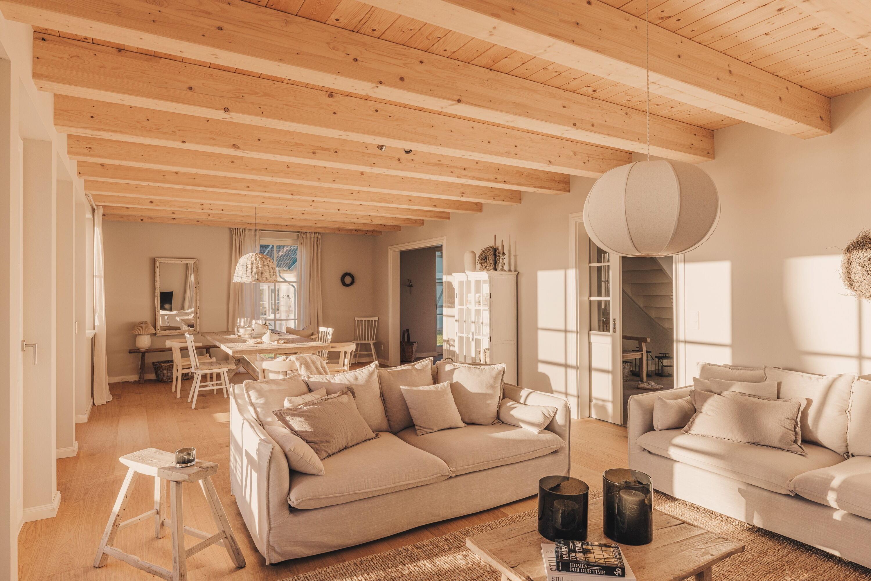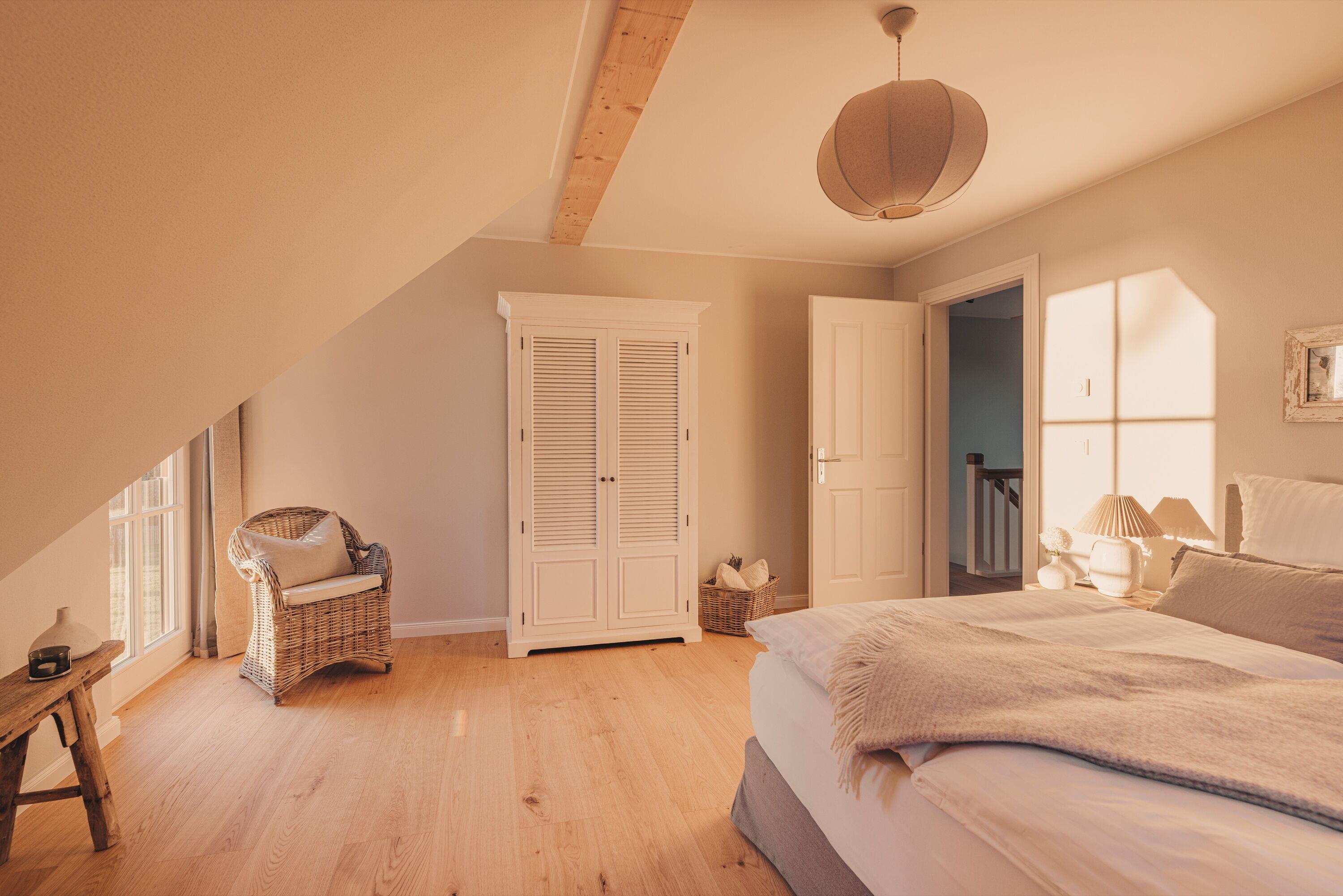 An kühleren Tagen lädt ein wärmender Kamin zum gemütlichen Verweilen ein, während die voll ausgestattete Küche ausgedehnte Kochabende garantiert. Erleben Sie echte Erholung mit 2 modernen Bädern, ausgestattet mit 2 großen Regenduschen, 2 WCs und einer Badewanne. Fußbodenheizung im gesamten Haus und Landhausdielen aus Eiche sorgen für warme Füße und sanfte Behaglichkeit.